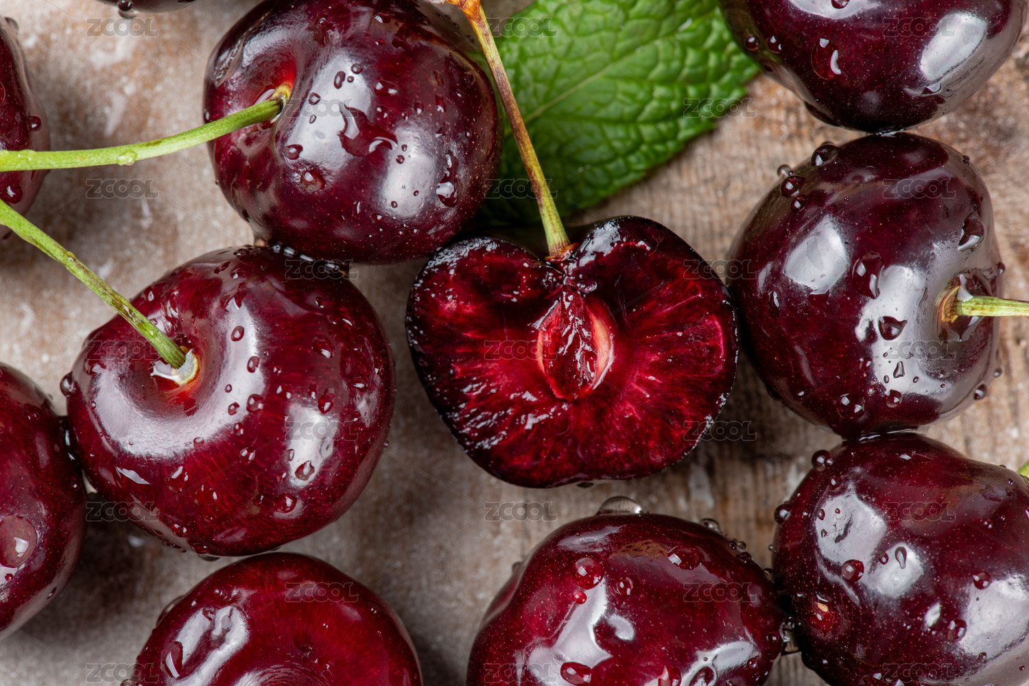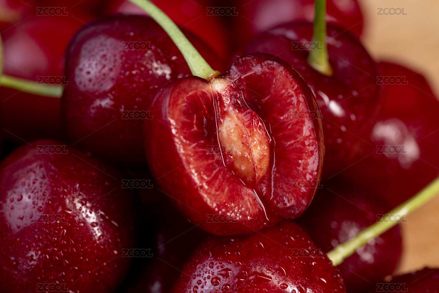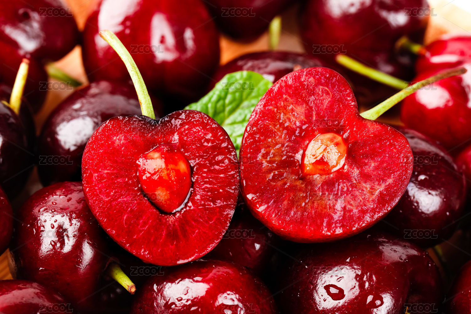 切开的樱桃车厘子特写