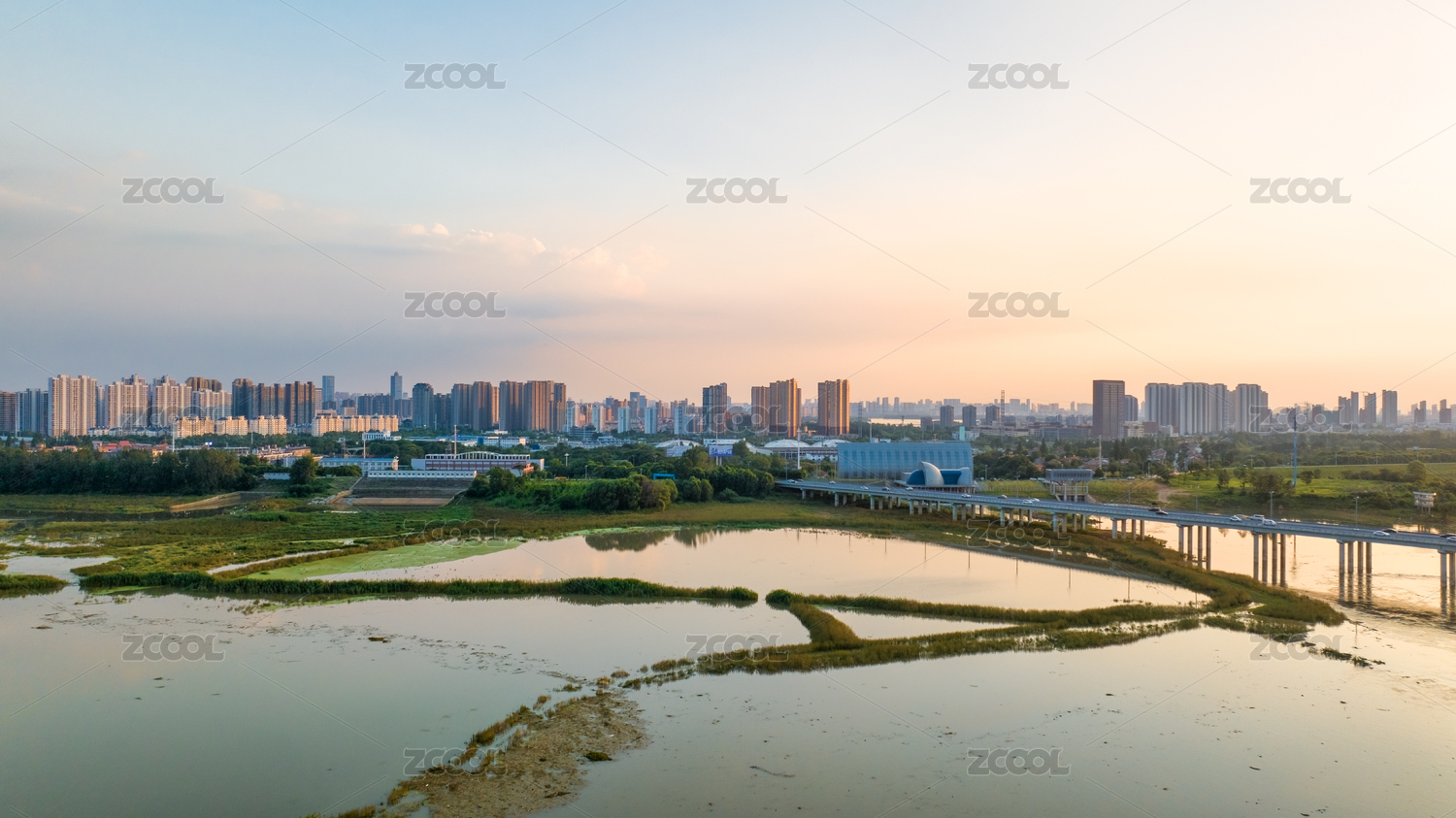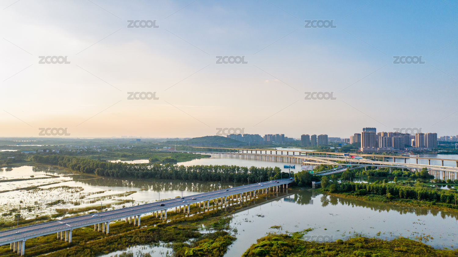 中国湖北武汉机场二高速处府河水位降低露出河床