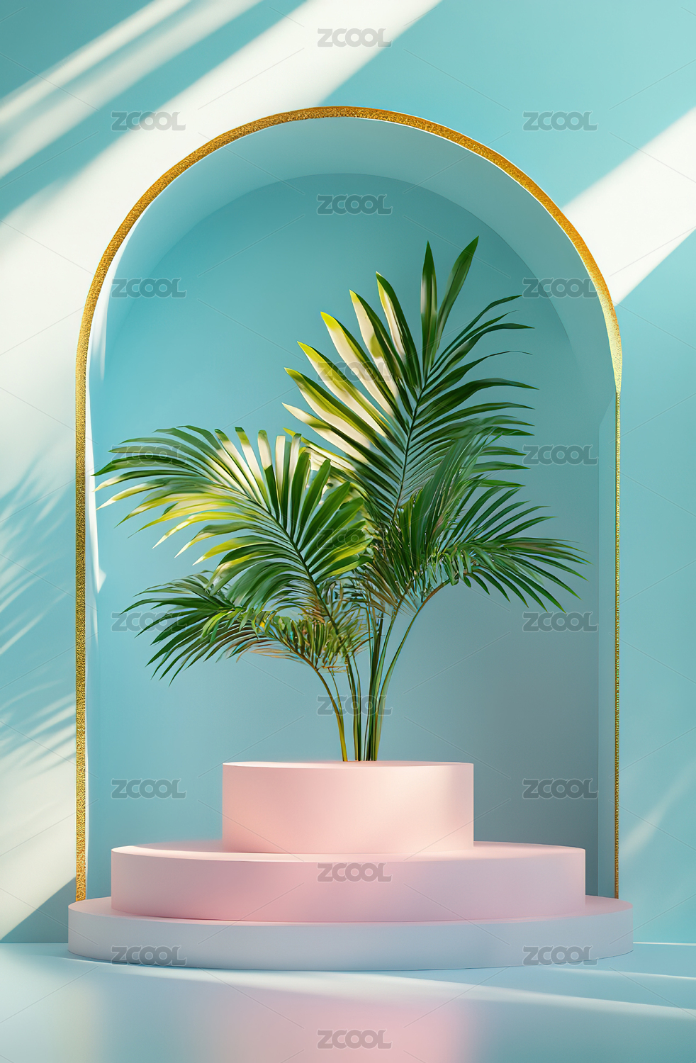 粉红色热带植物展示室内场景