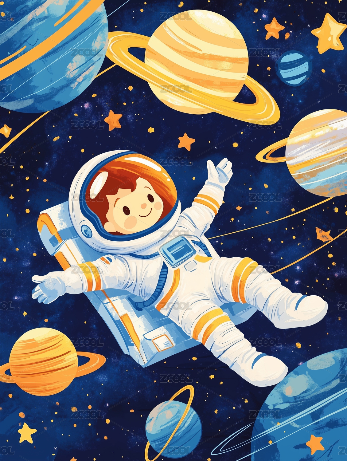 卡通可爱宇航员航天科技插画