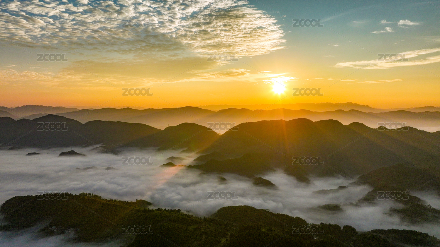 亚洲,中国,重庆,酉阳,武陵山区,秋天,日出,清晨,雾气,平流雾