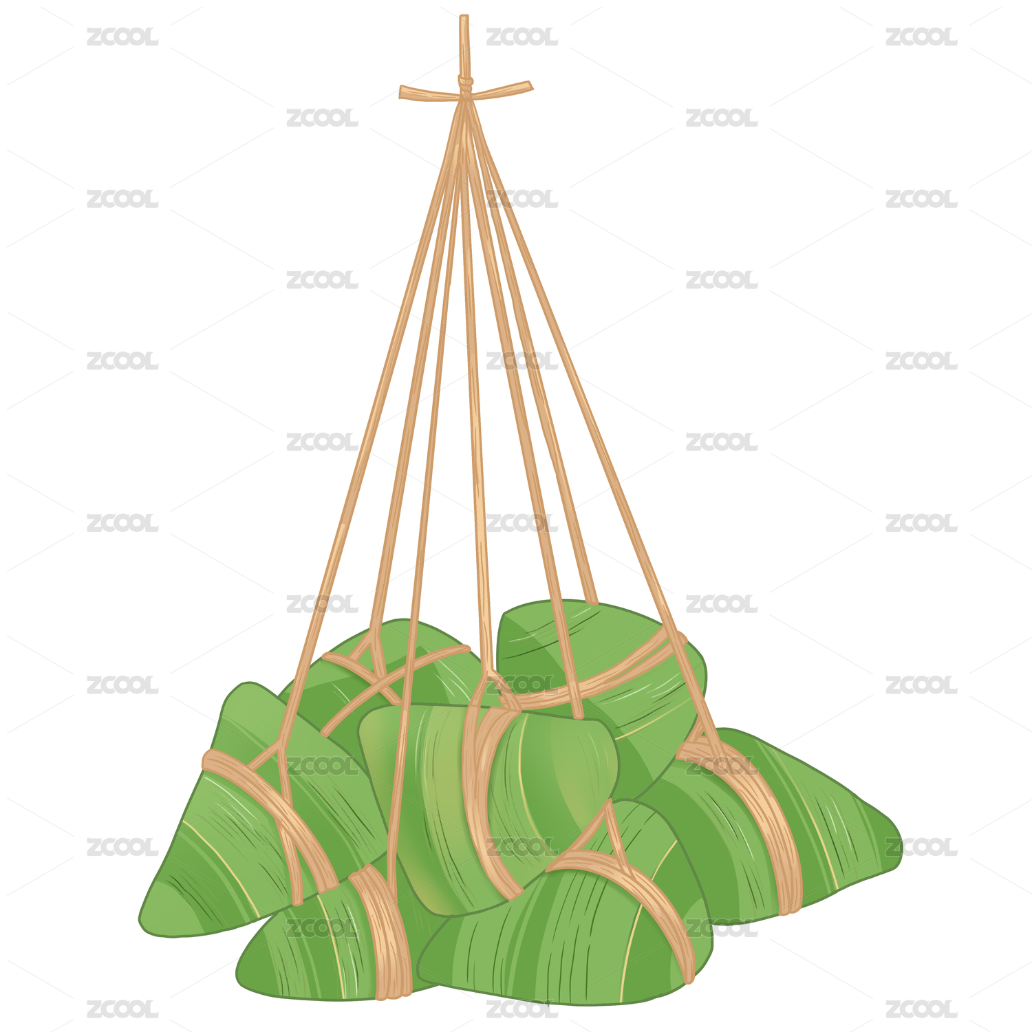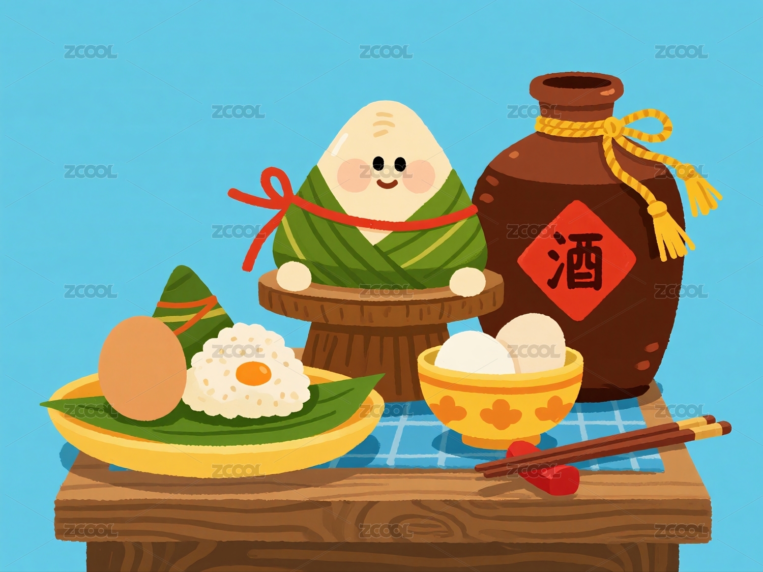 端午节粽子和雄黄酒摆在一起的插画白底素材