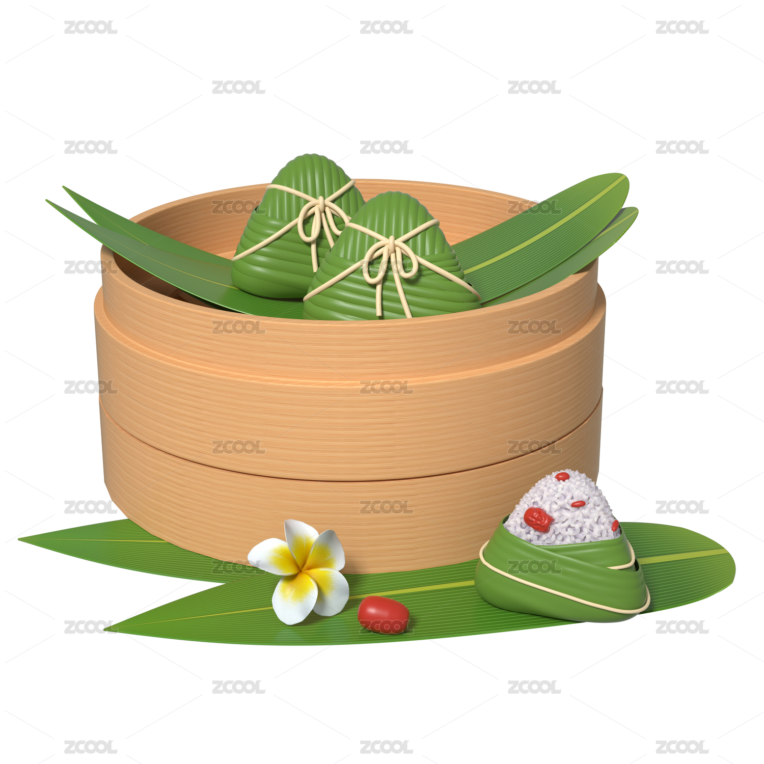 3D,立体,国潮,中国风,端午节,粽子,卡通,可爱,拟人,黄酒