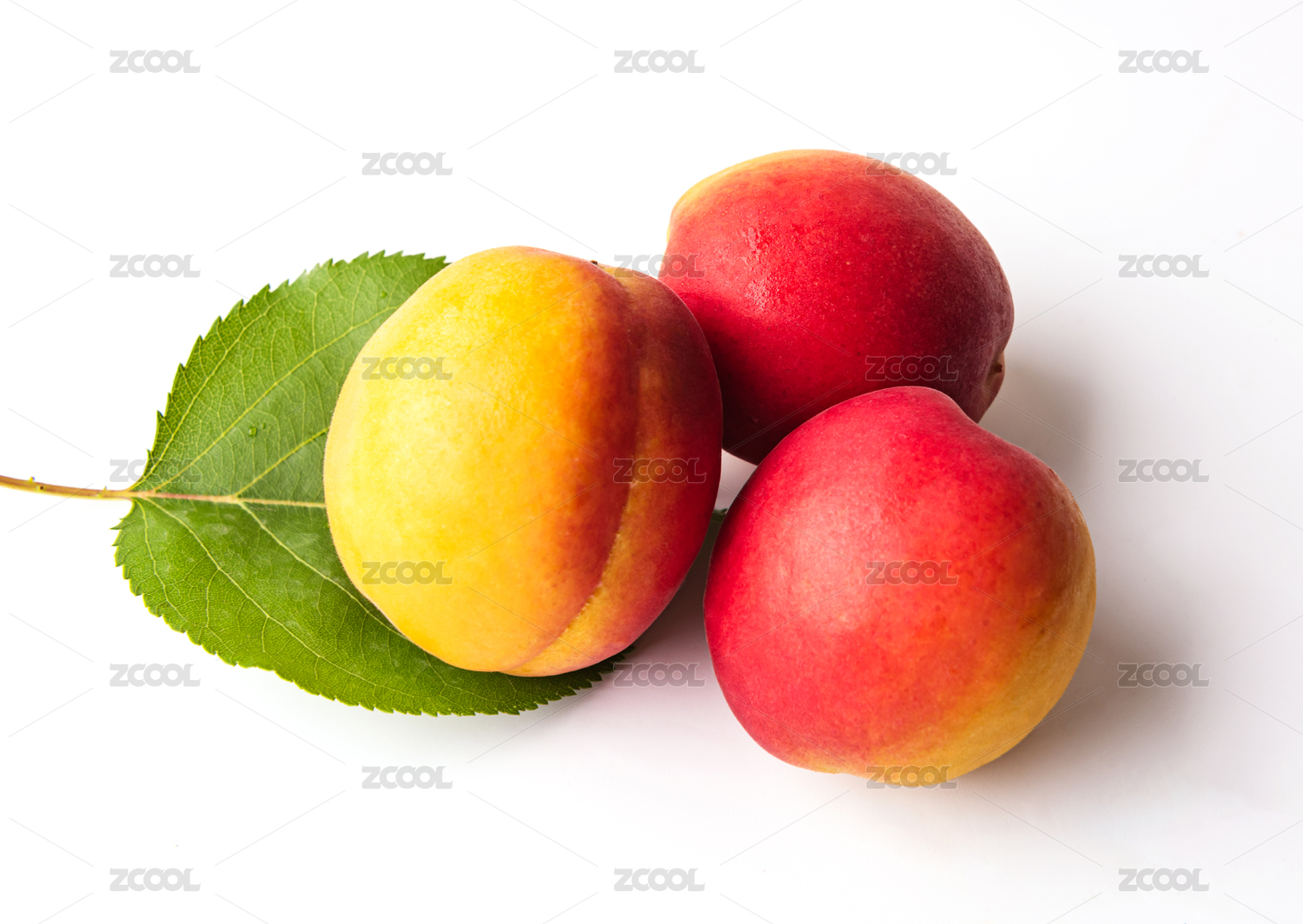 白底上放着油桃