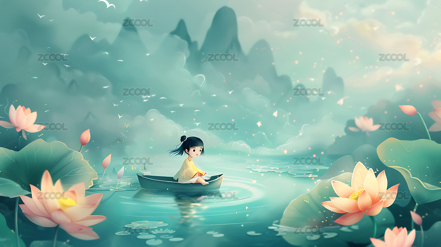 荷塘,荷花,国风,植物,荷叶,夏天,淡雅