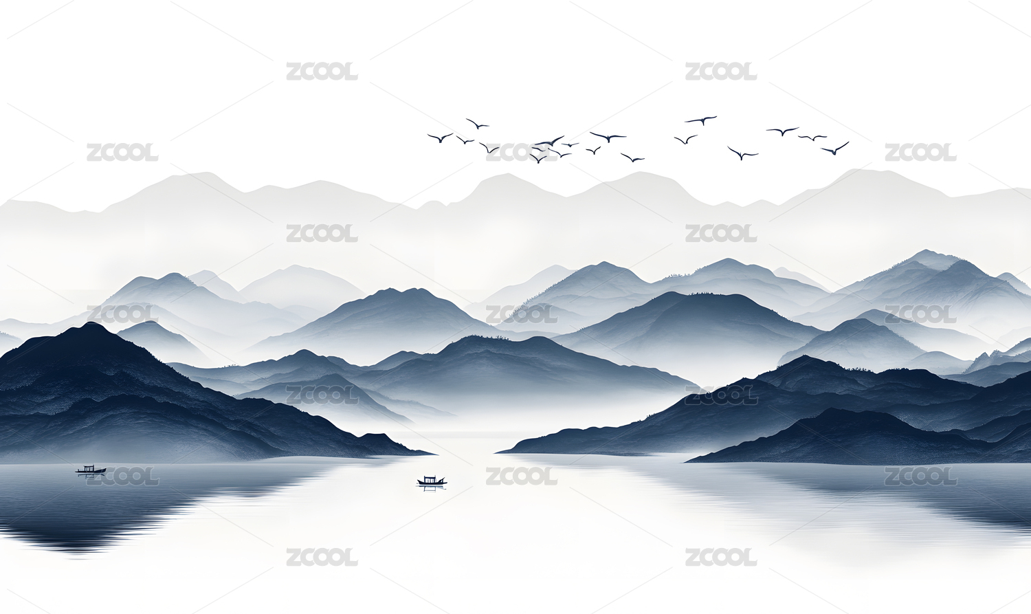 插画,水墨画,中国风,中国画,传统,山水,山水画,风景,山脉,鸟类