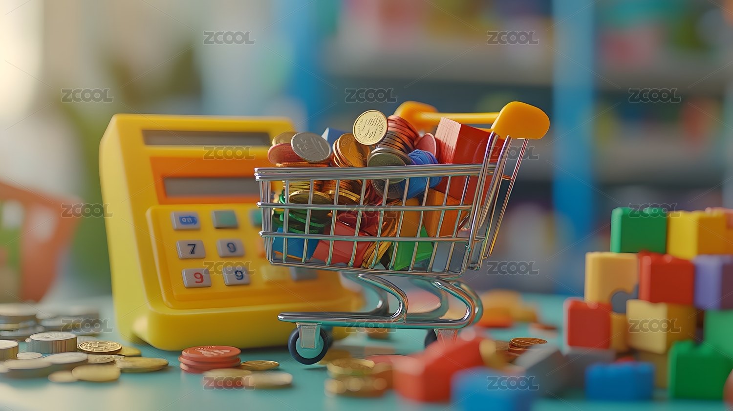 背景,购物,购物车,创意,商品,小推车,购买,迷你,摆放,节日