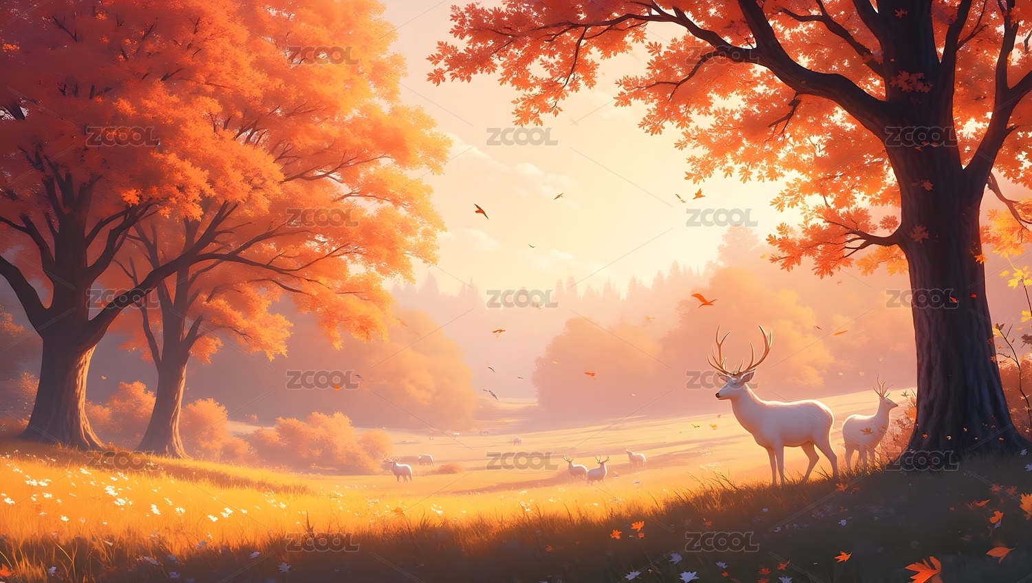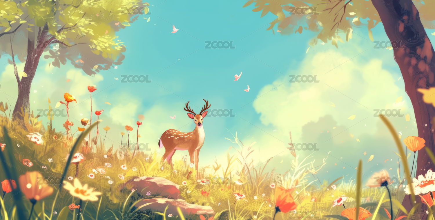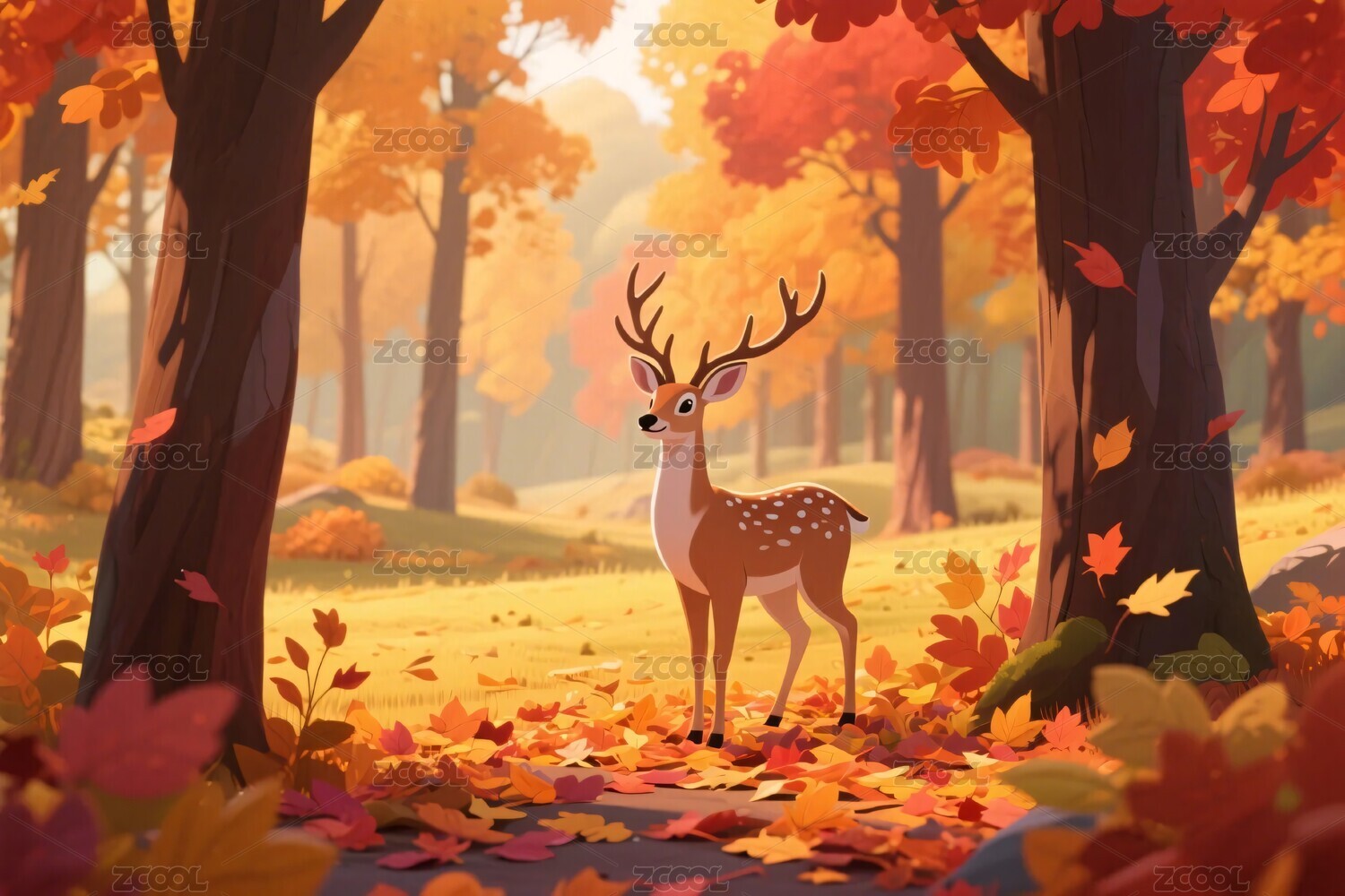 卡通,动物,可爱,萌,童话,童趣,亲和,小鹿,秋天,阳光