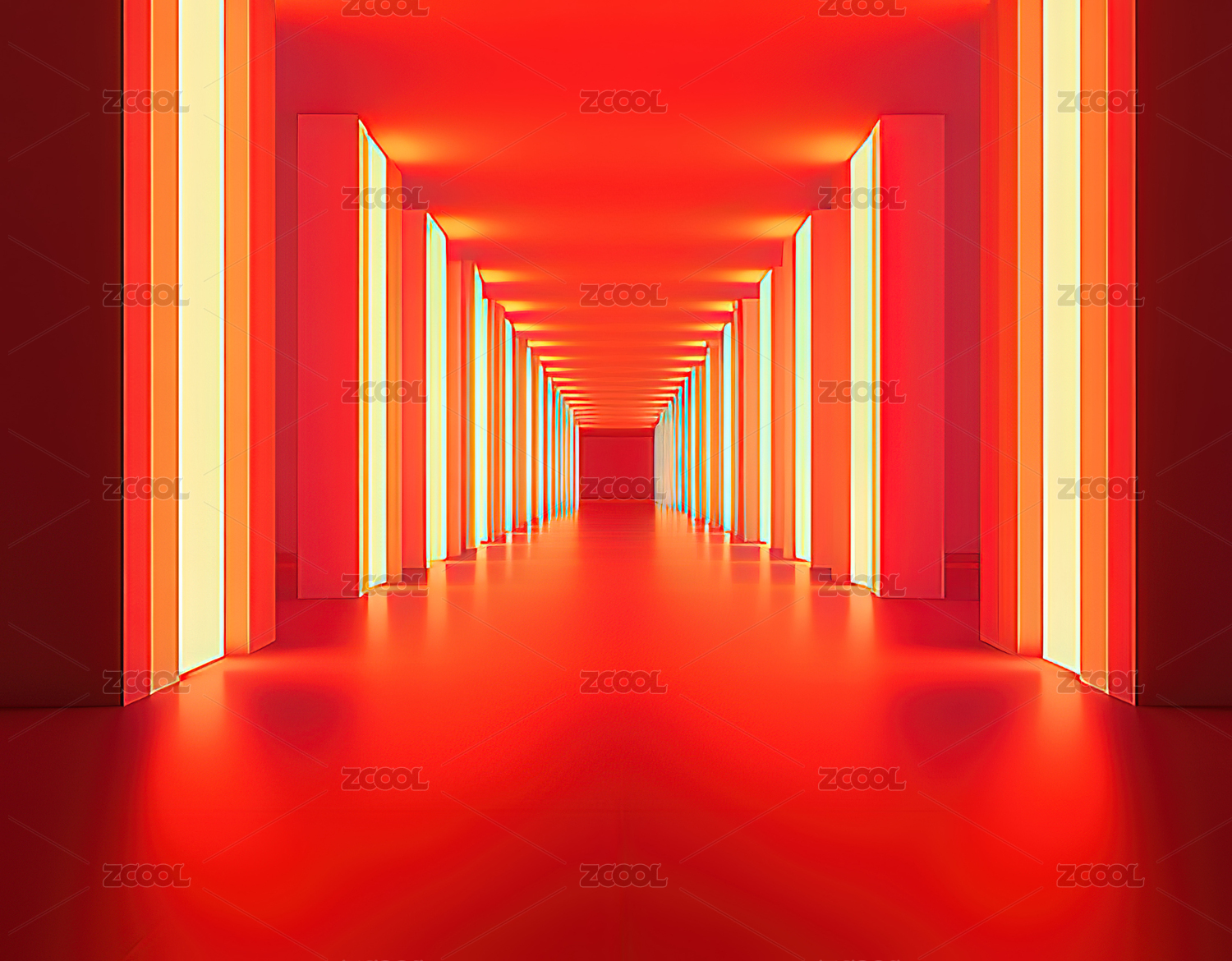 现代,科技,简约,设计,未来感,装饰,建筑,空间,走廊,红色