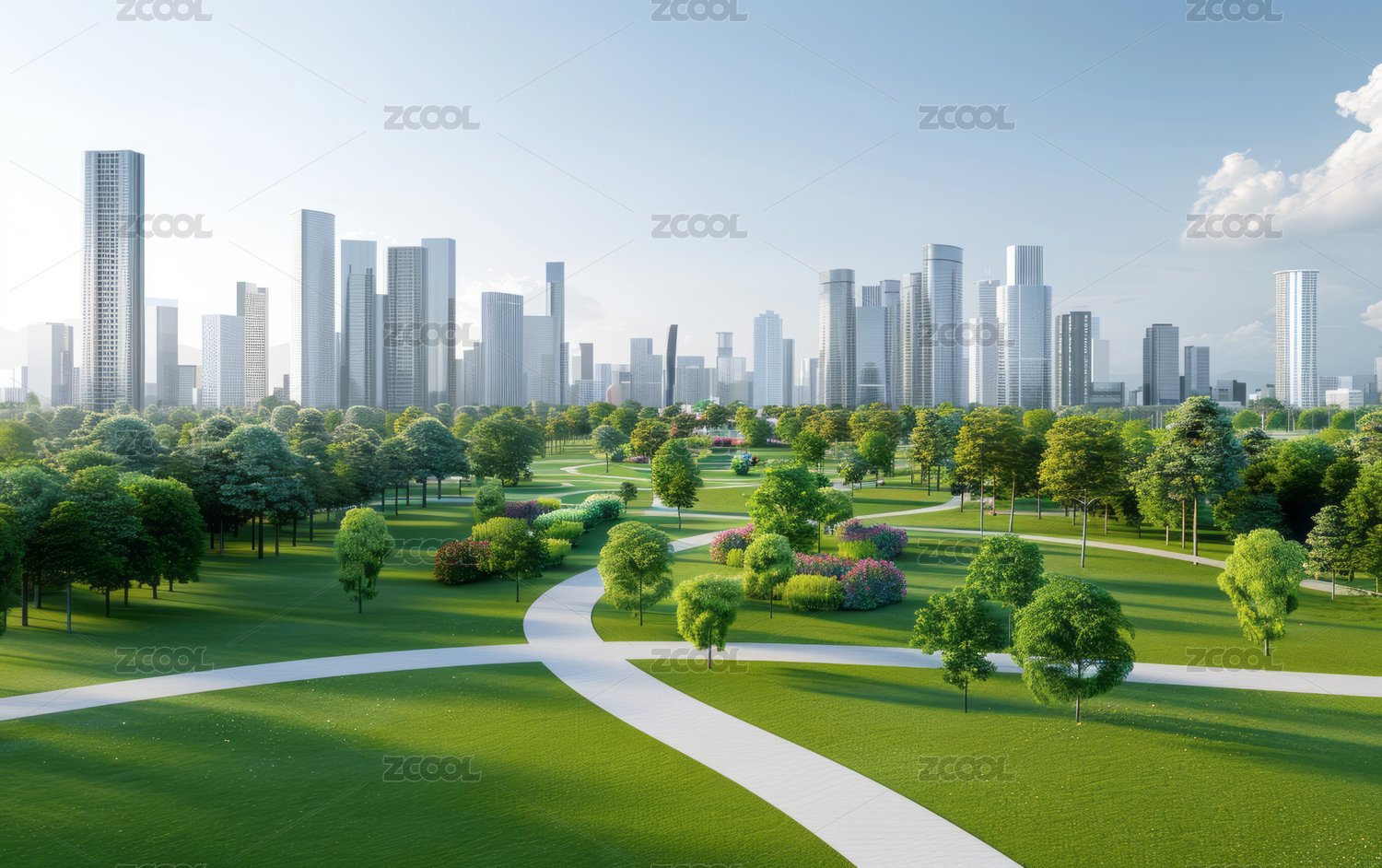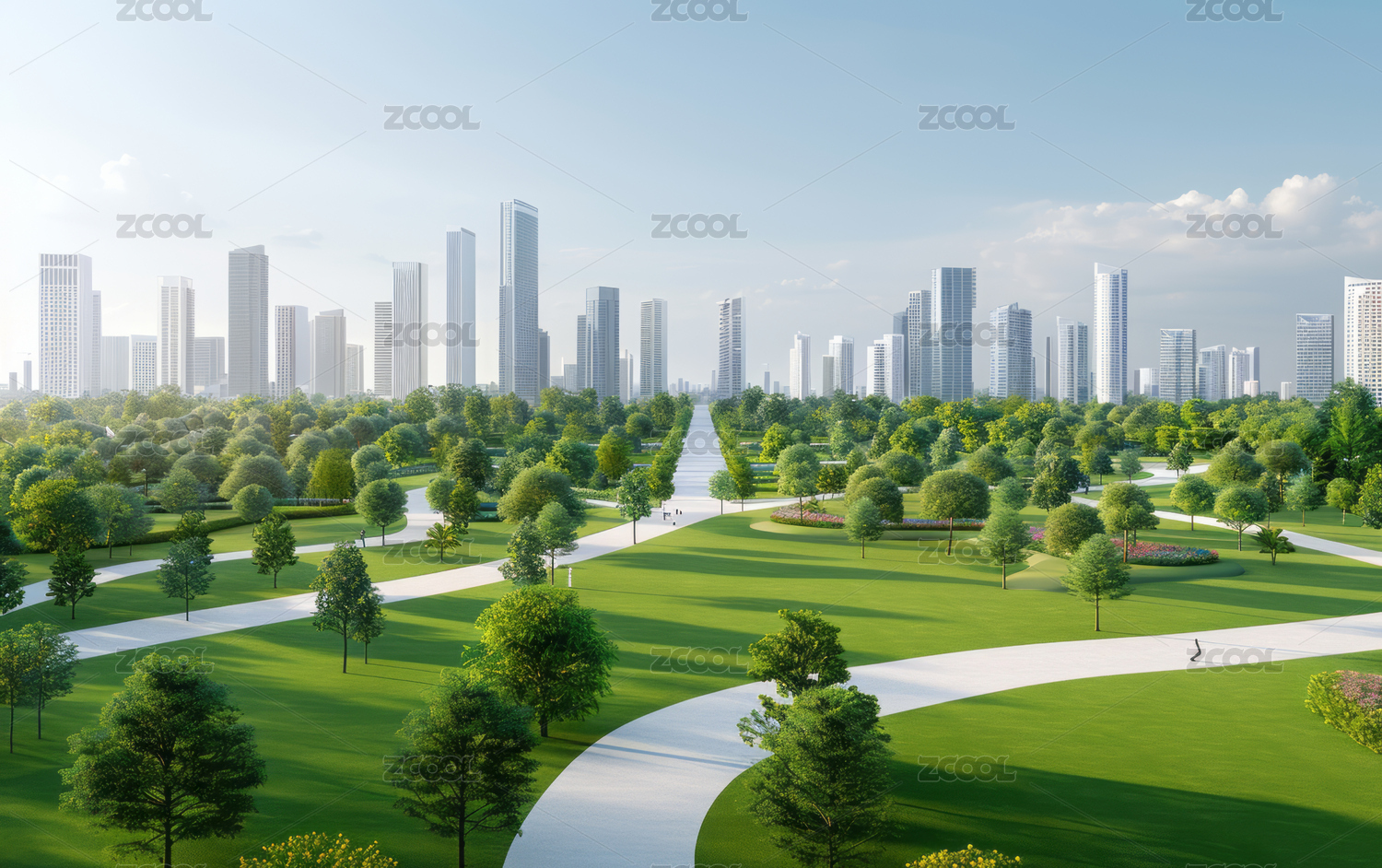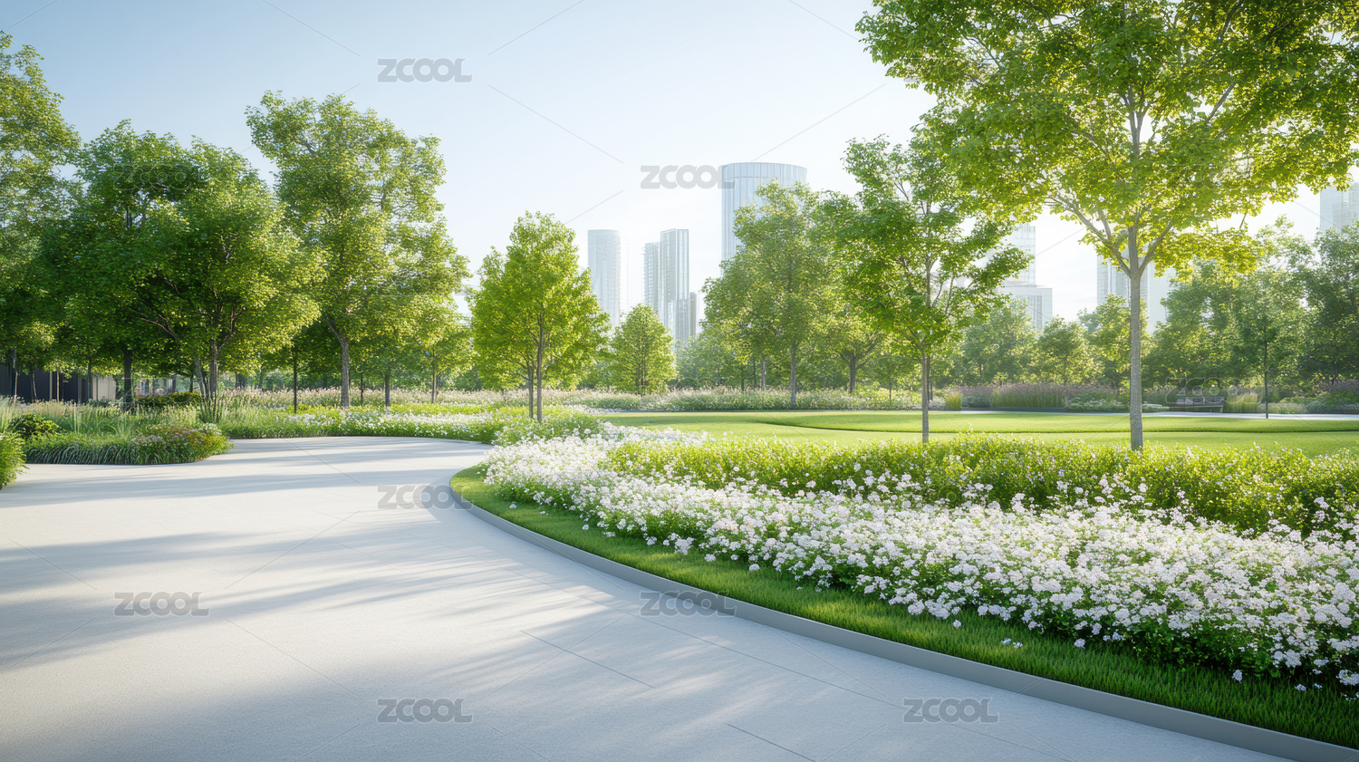 城市景观, 城市建设, 自然环境,绿化带, 道路美化, 现代城市, 鲜花植被, 绿树成荫, 宽阔马路, 清新空气