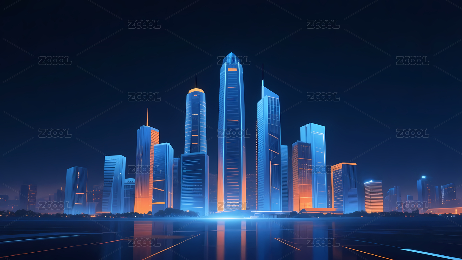 高楼大厦夜景水面倒影