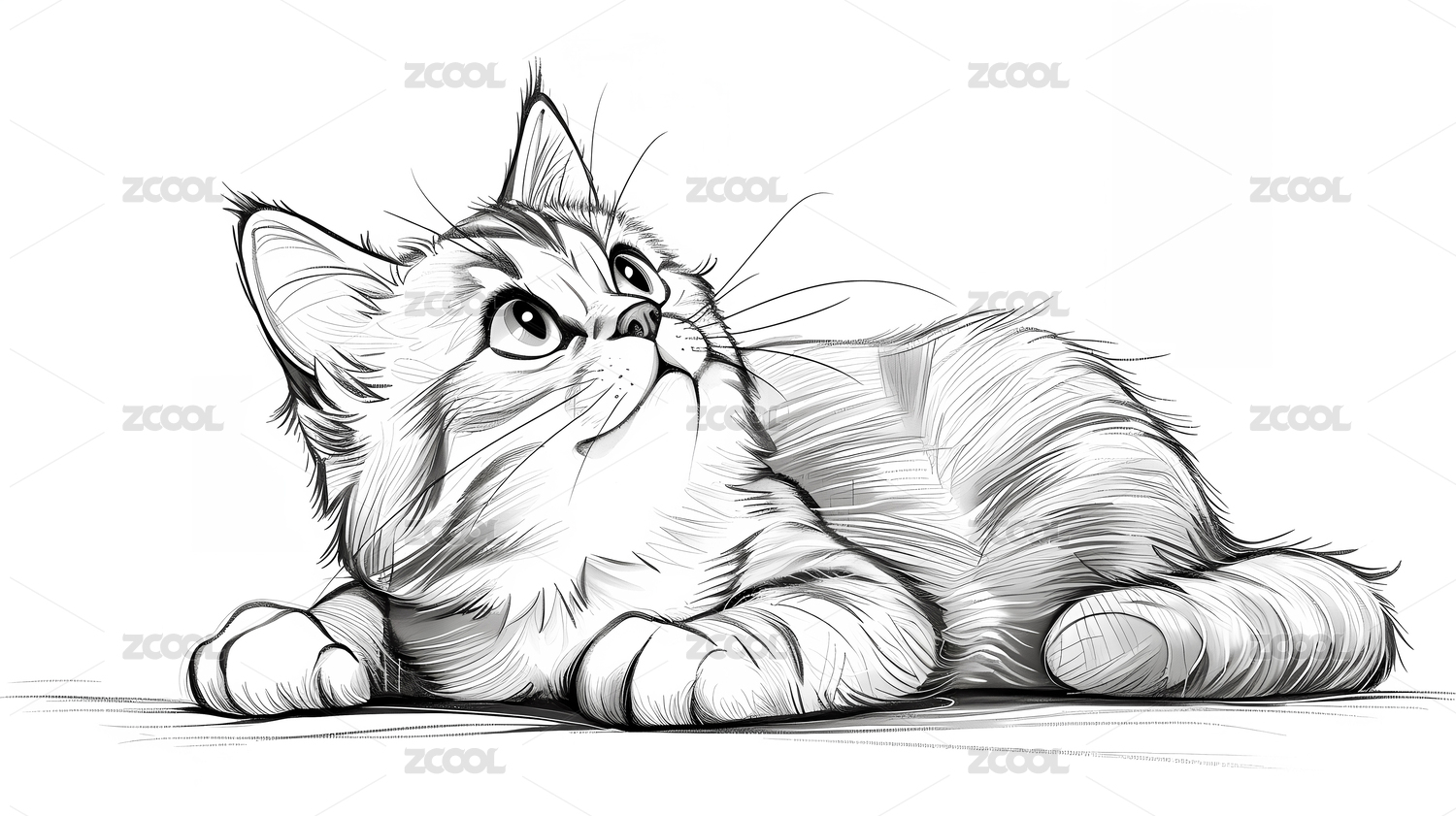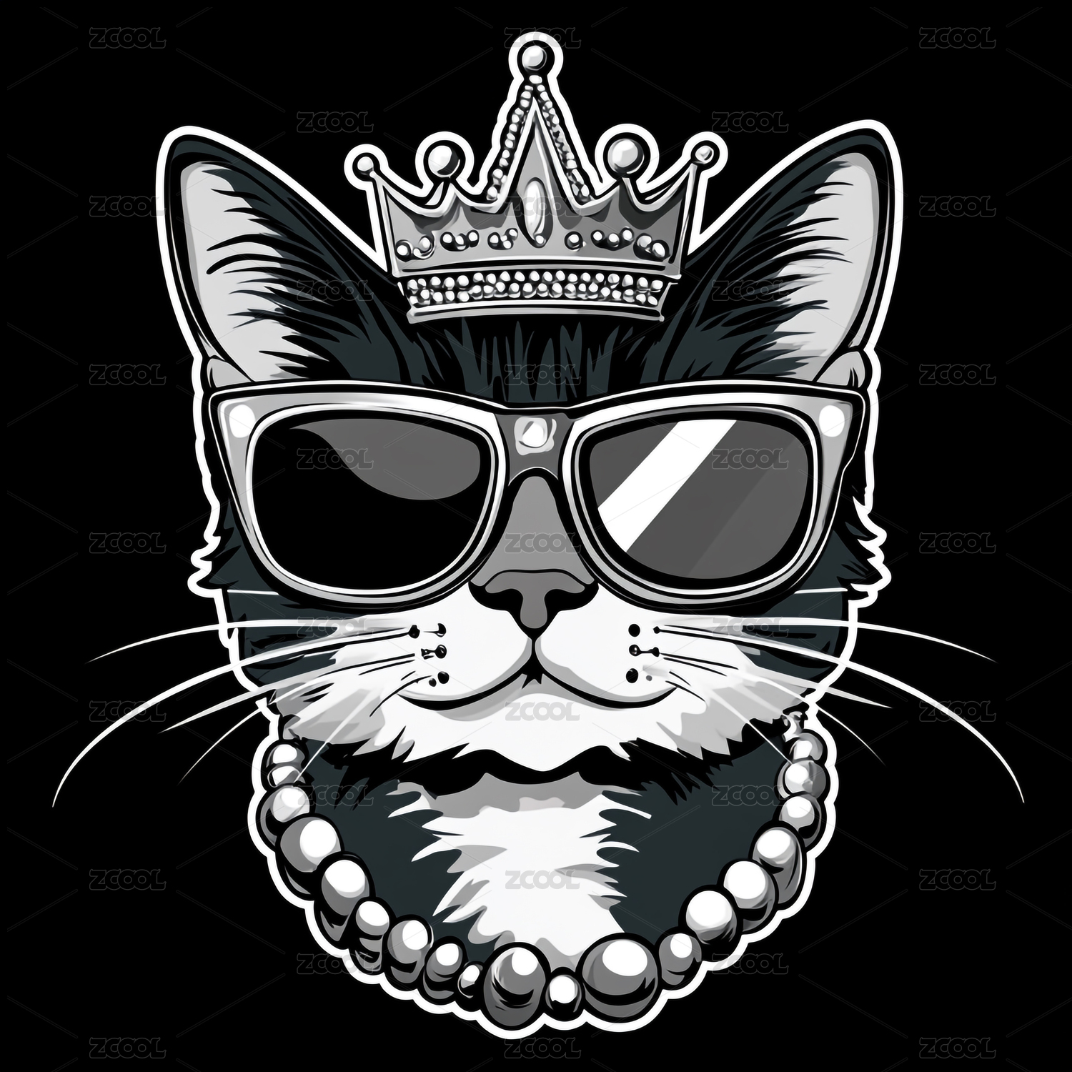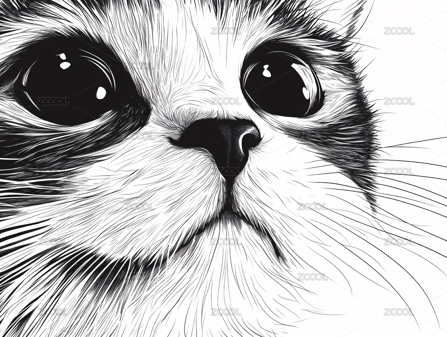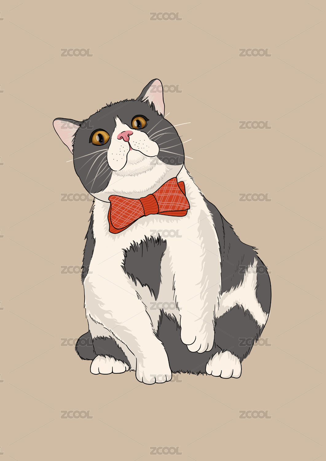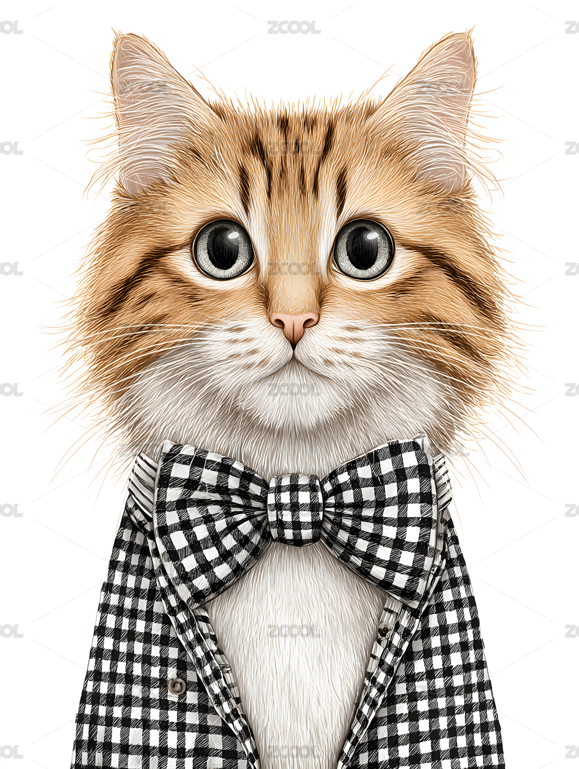 猫木刻版画风格复古时尚艺术拟人动物插画