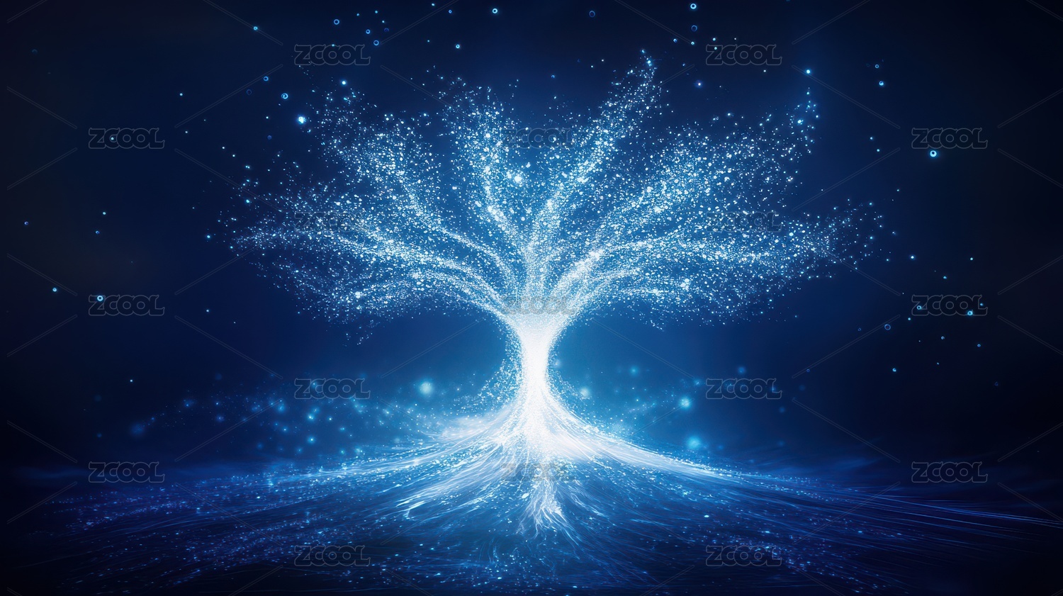 未来,科技,线条,抽象,蓝色,艺术,梦幻,星空,树,光