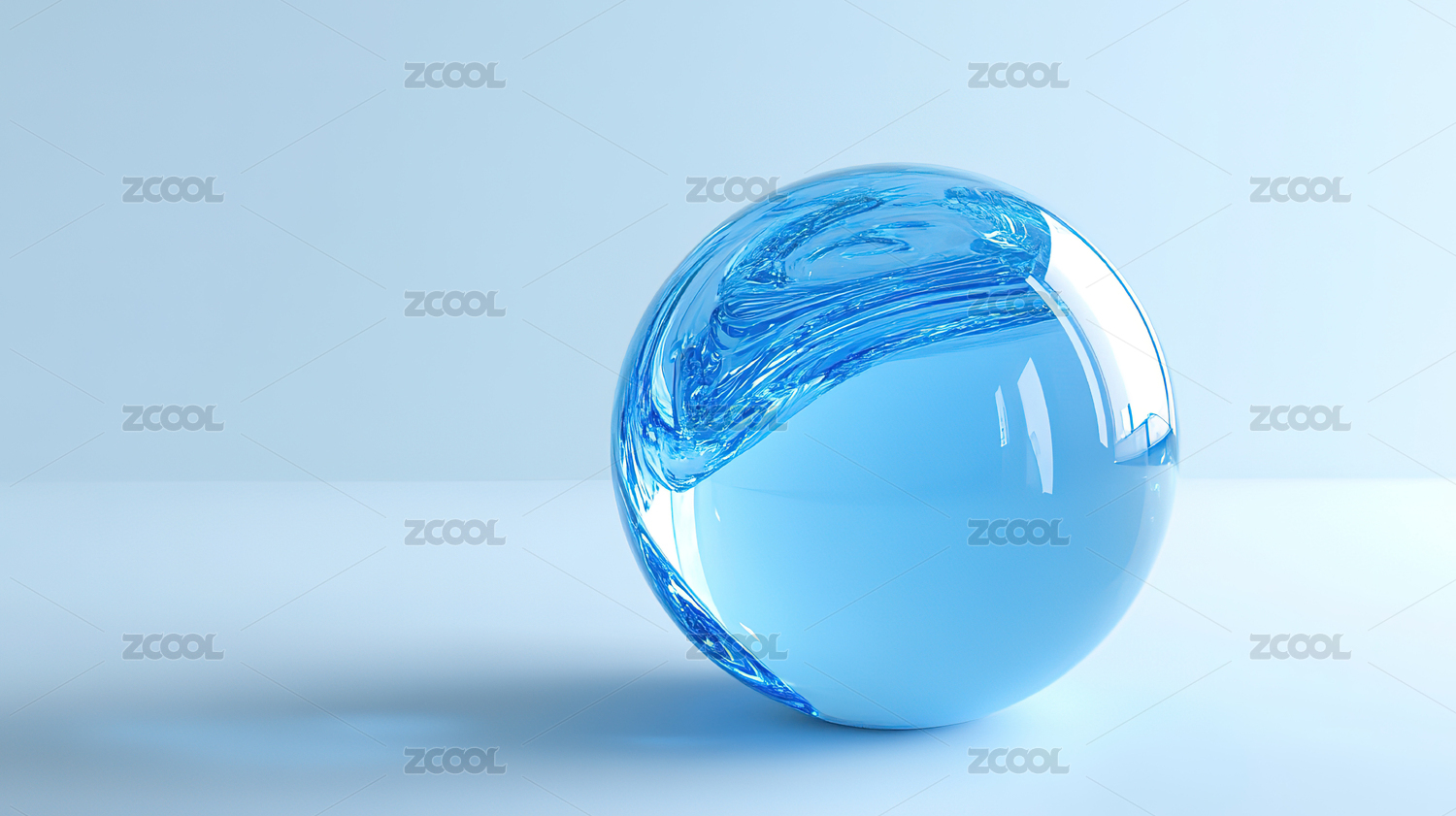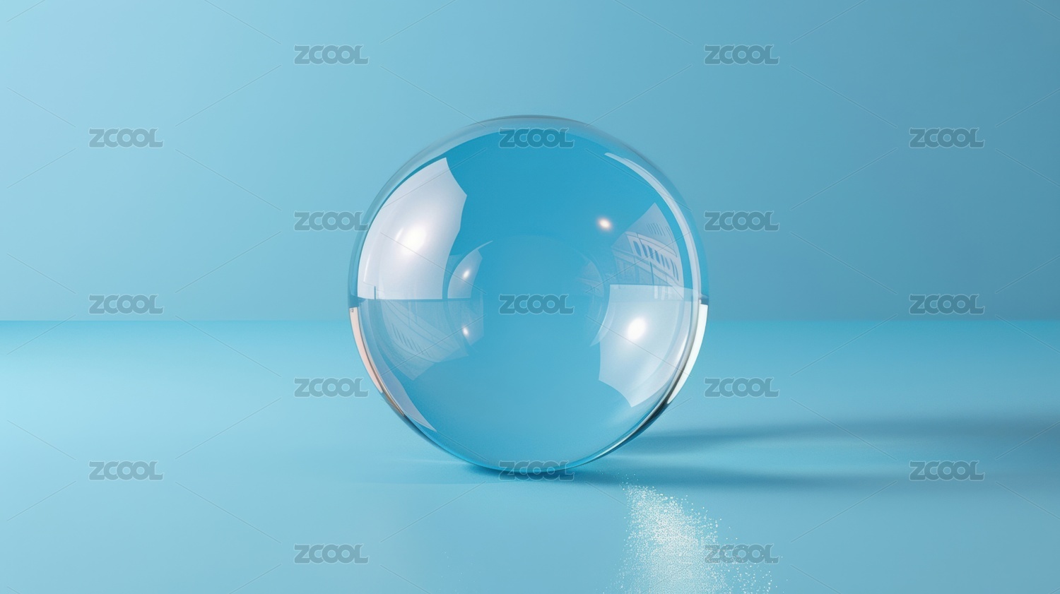 蓝白琉璃球 晶莹剔透 蓝色背景