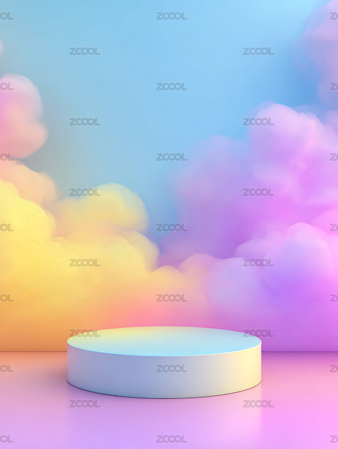 梦幻粉蓝渐变色展台底座电商3D效果图