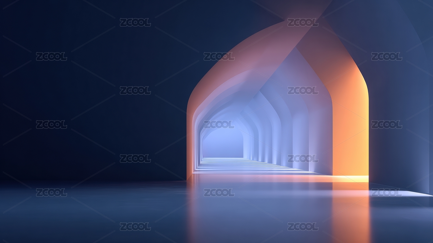 未来, 科技, 设计, 现代, 蓝色, 背景, 曲线, 空间, 隧道, 光线