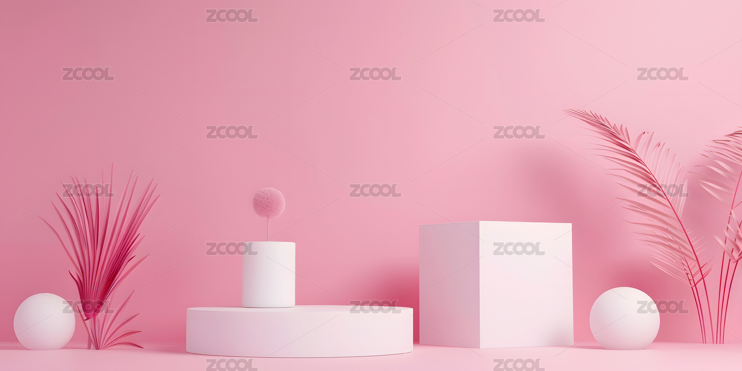 粉红色背景下的产品展台