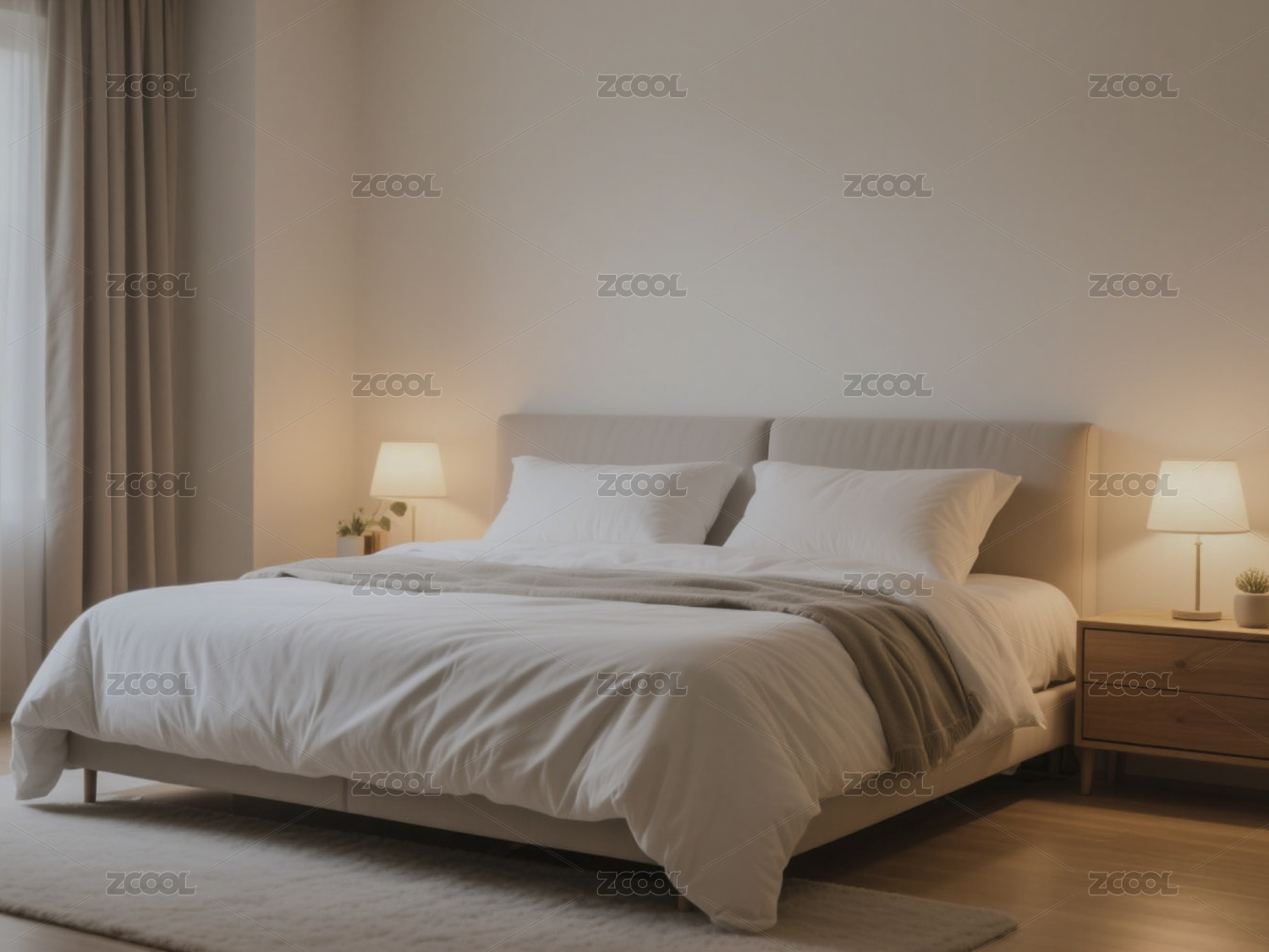 3D室内现代简约卧室床三维空间场景