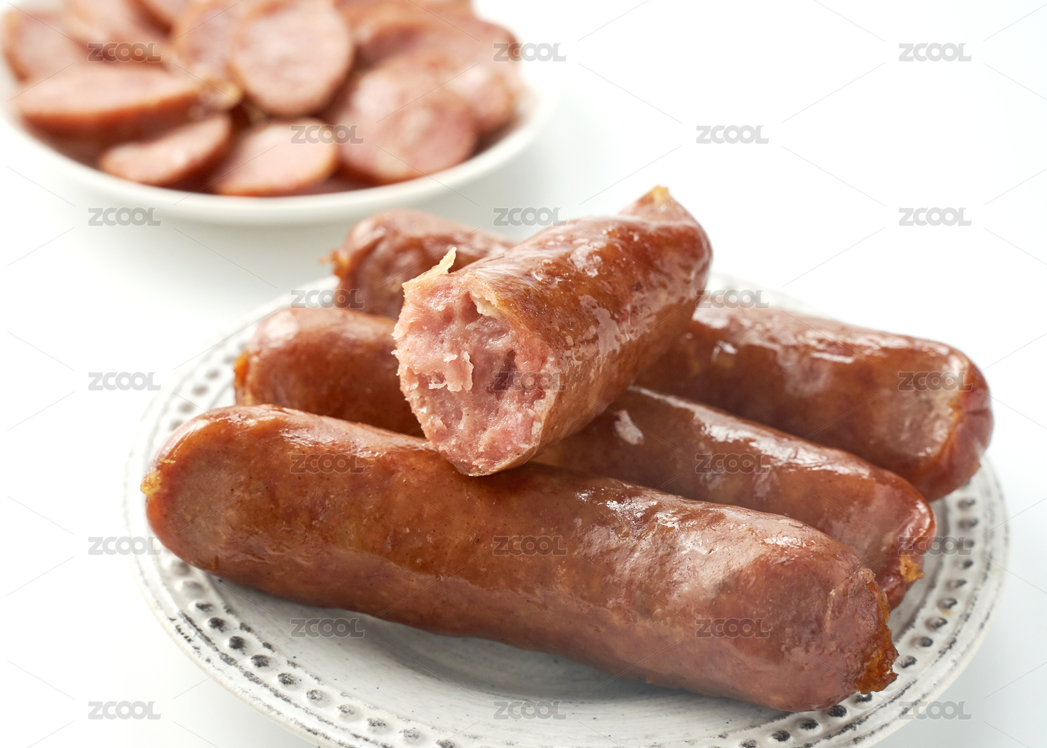 白底上的薄衣腊肠食材特写