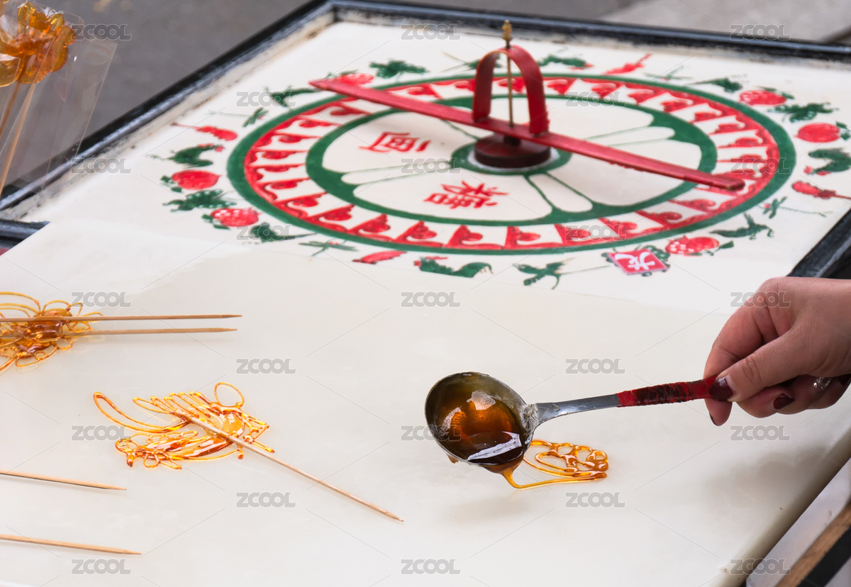 正在制作的中国传统民间手工艺糖画