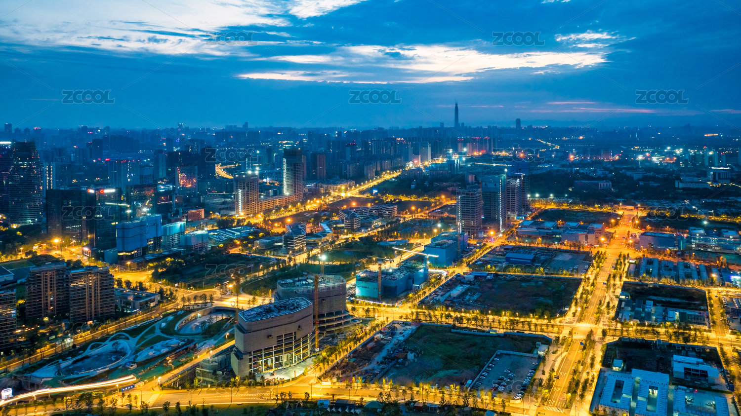 中国四川省成都市高新区金融城周边现代建筑夜景航拍图