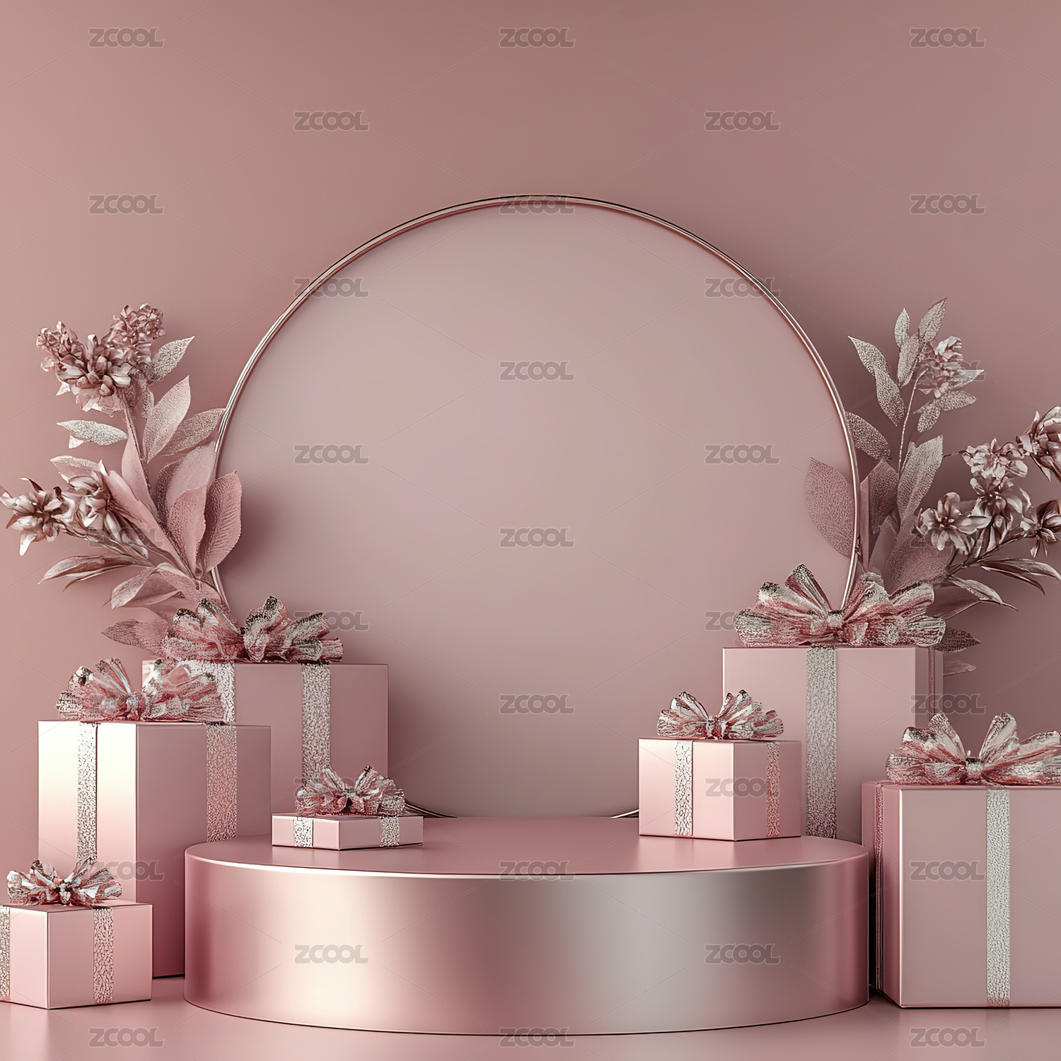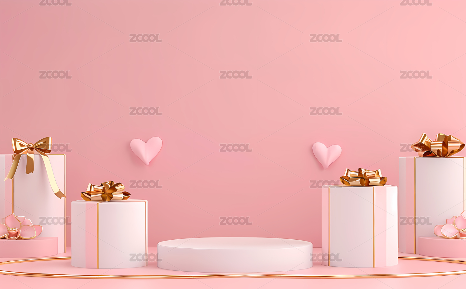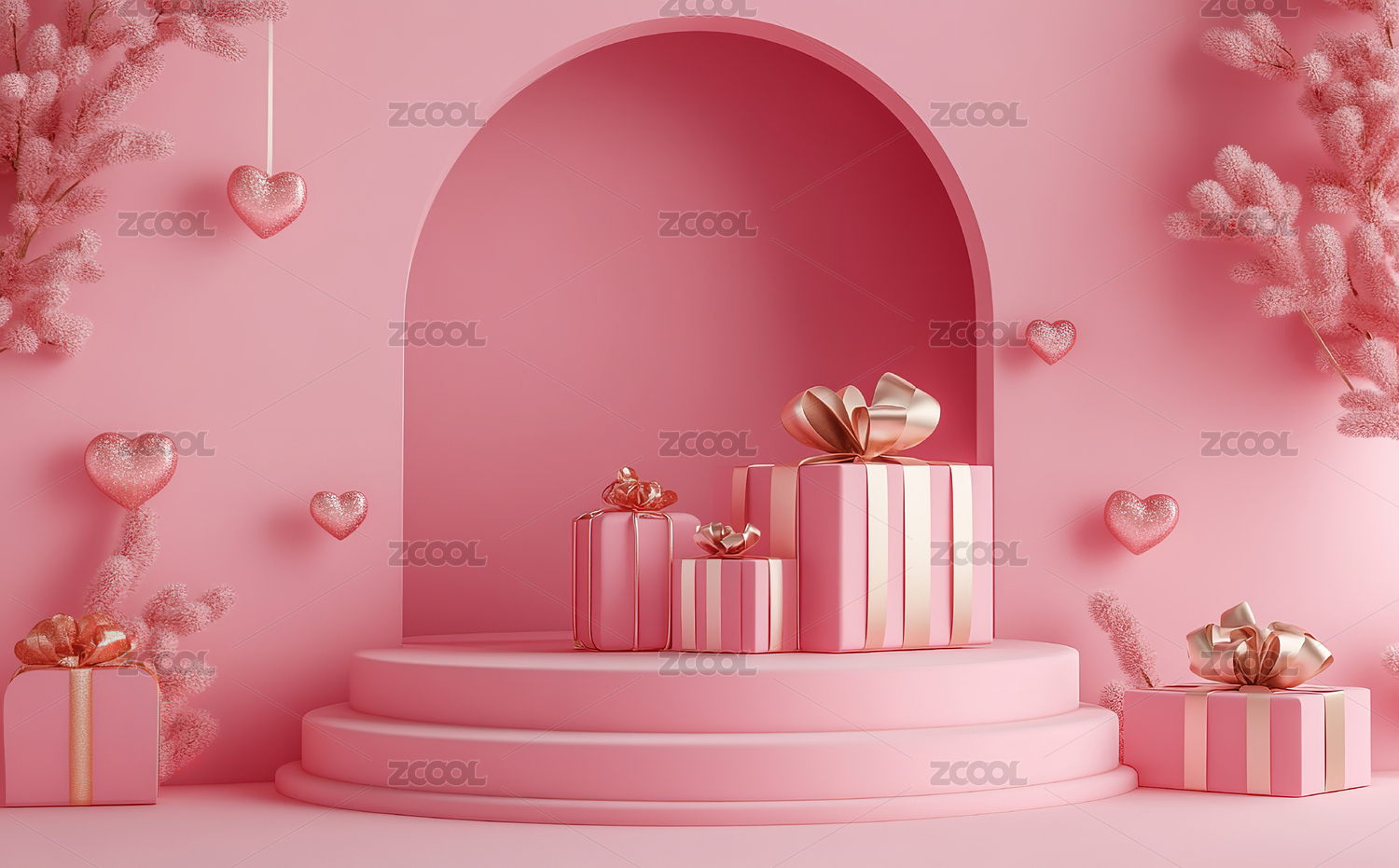 3D情人节粉色礼物鲜花产品展台