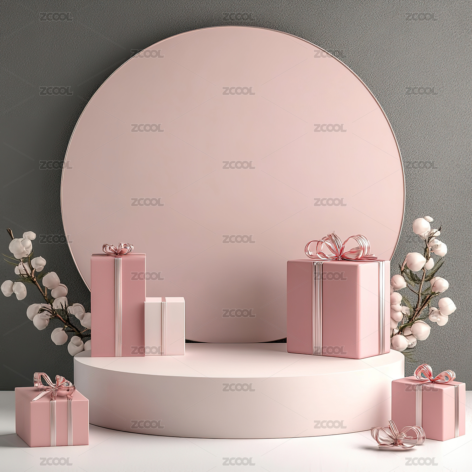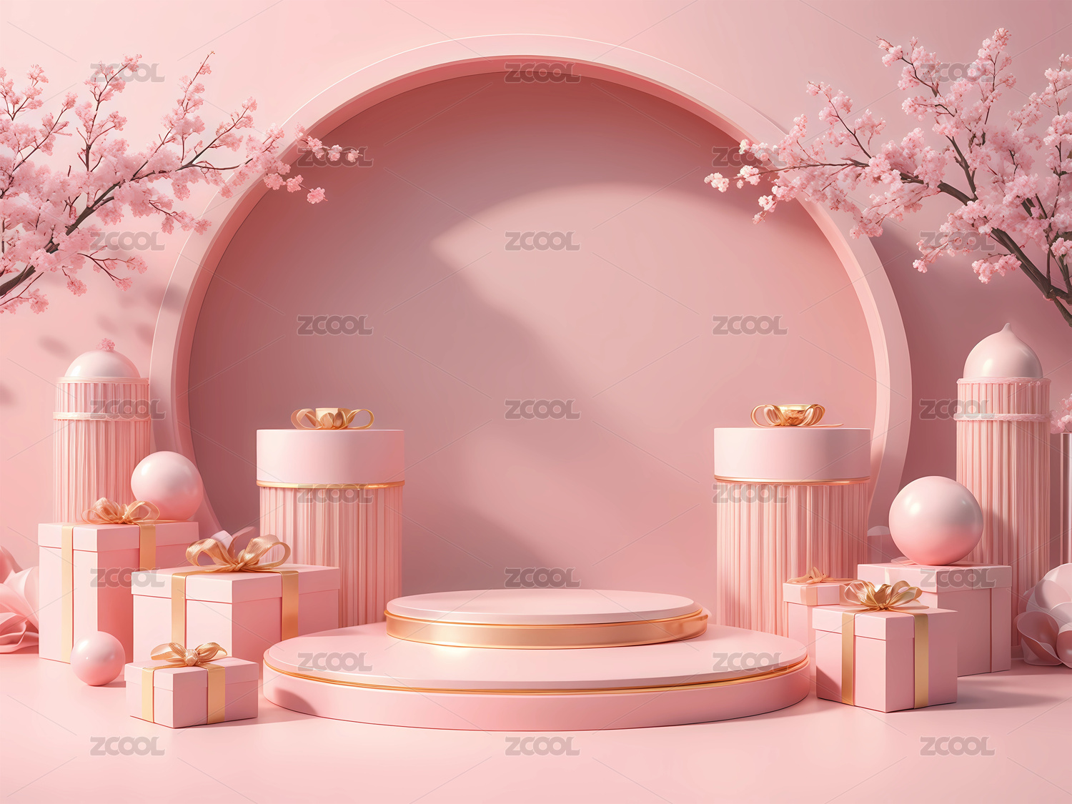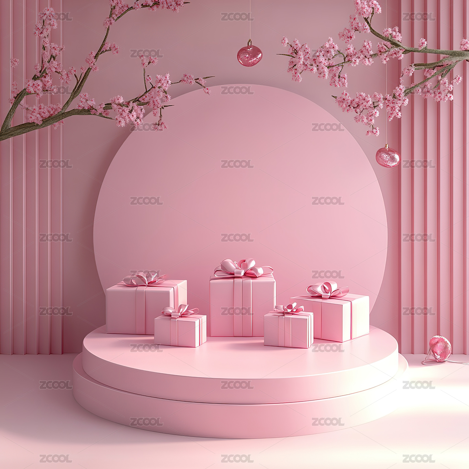 3D情人节粉色礼物鲜花产品展台