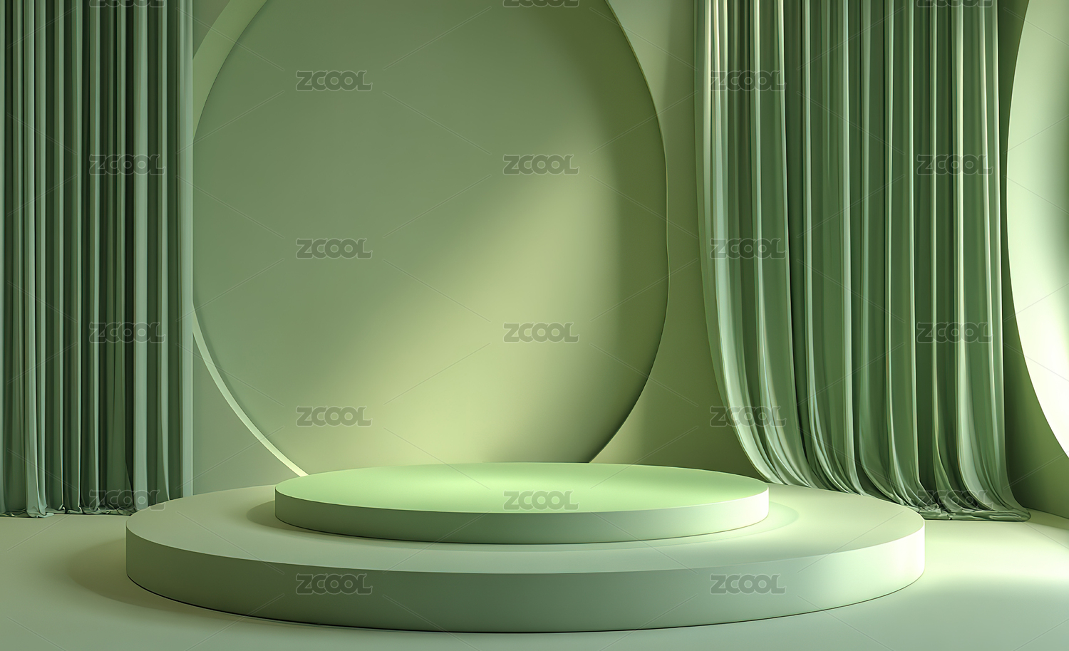 绿色拱门下的圆形阶梯展台