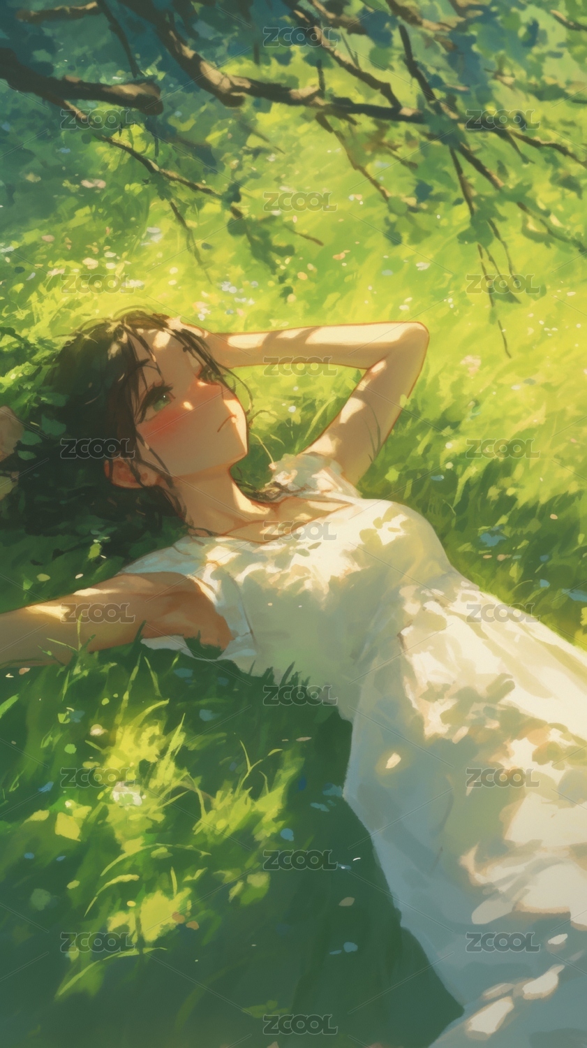 女孩,青春,漫画,插画,海报,插图,动漫,绿色,微笑,户外