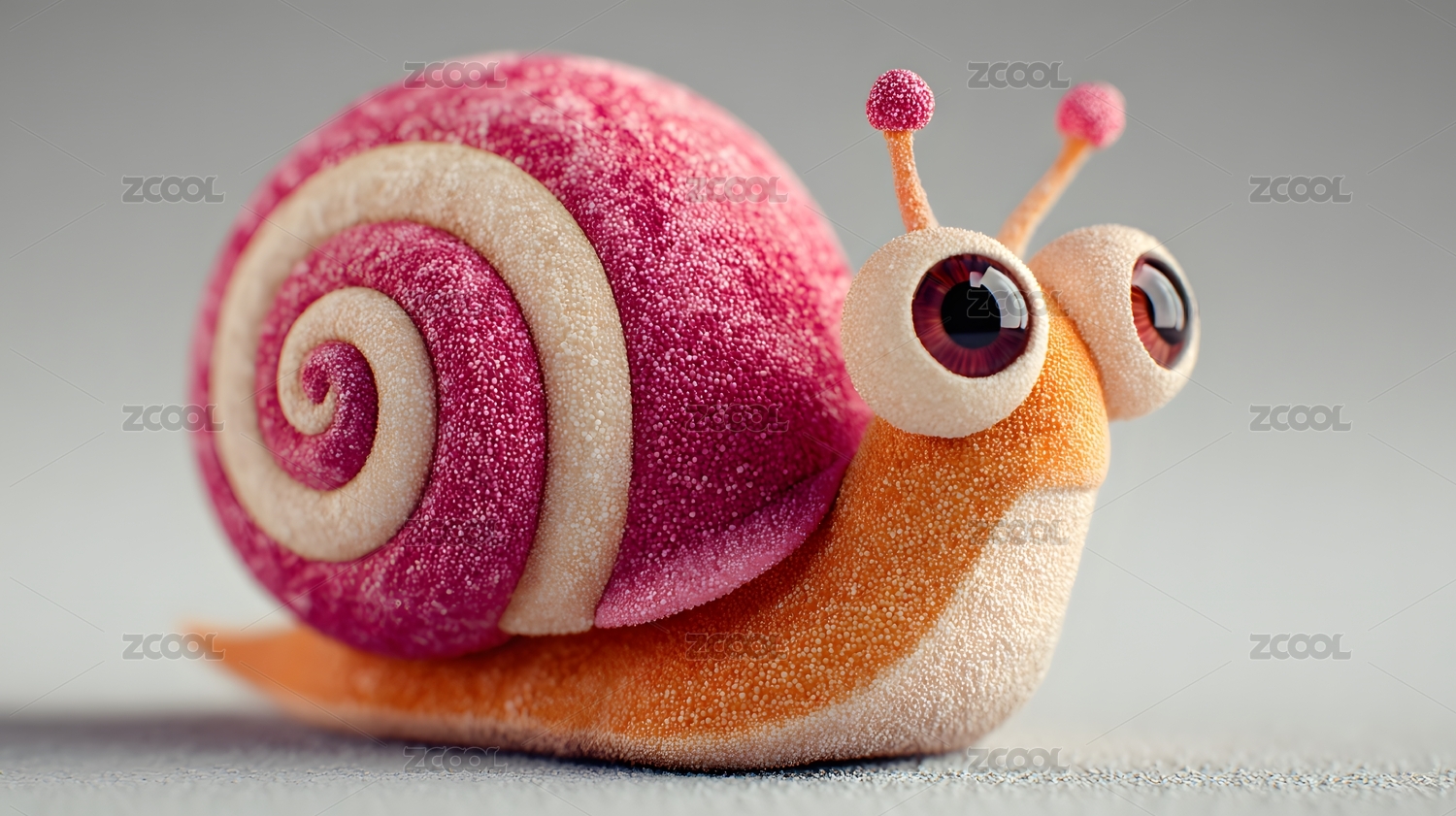 可爱的小宝宝在桌上的小雕像上的蜗牛