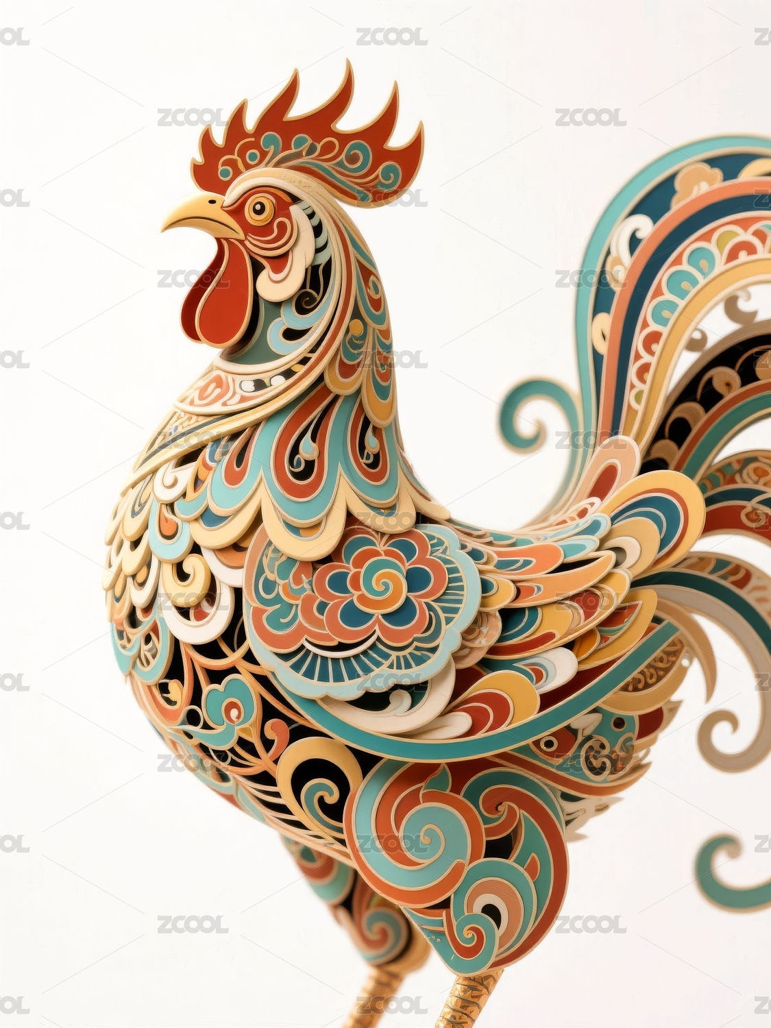 红色剪纸风格大公鸡