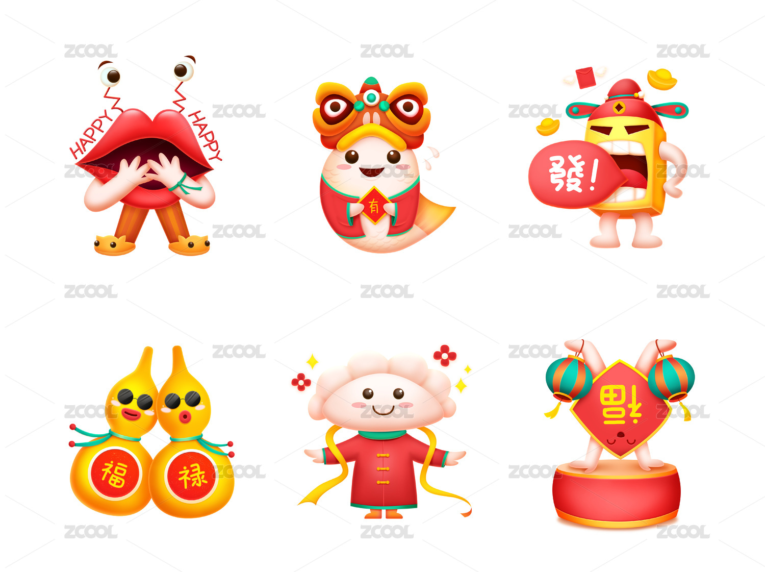六个卡通人物动物全身戴帽子滑板打篮球黄牛