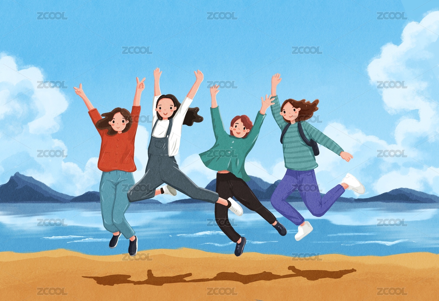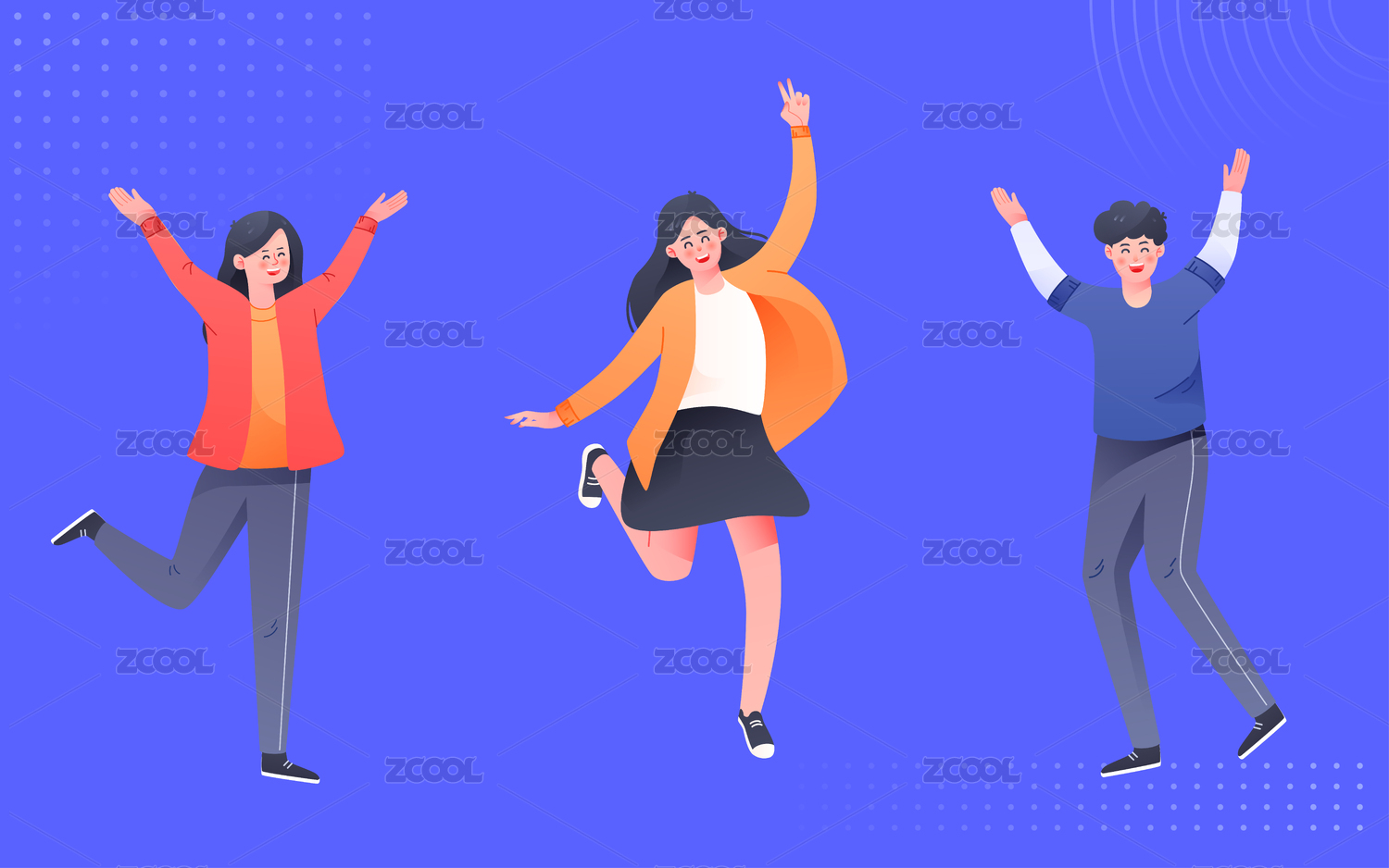 卡通男生女生快乐青少年人物帅哥矢量插画