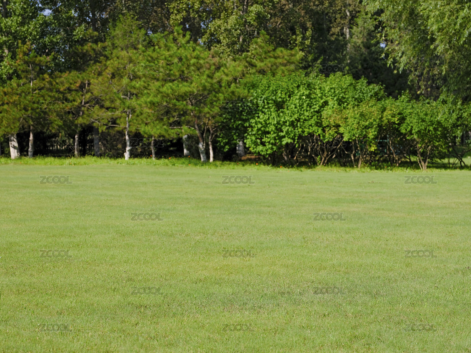 夏天户外的一片绿色的草地和树林