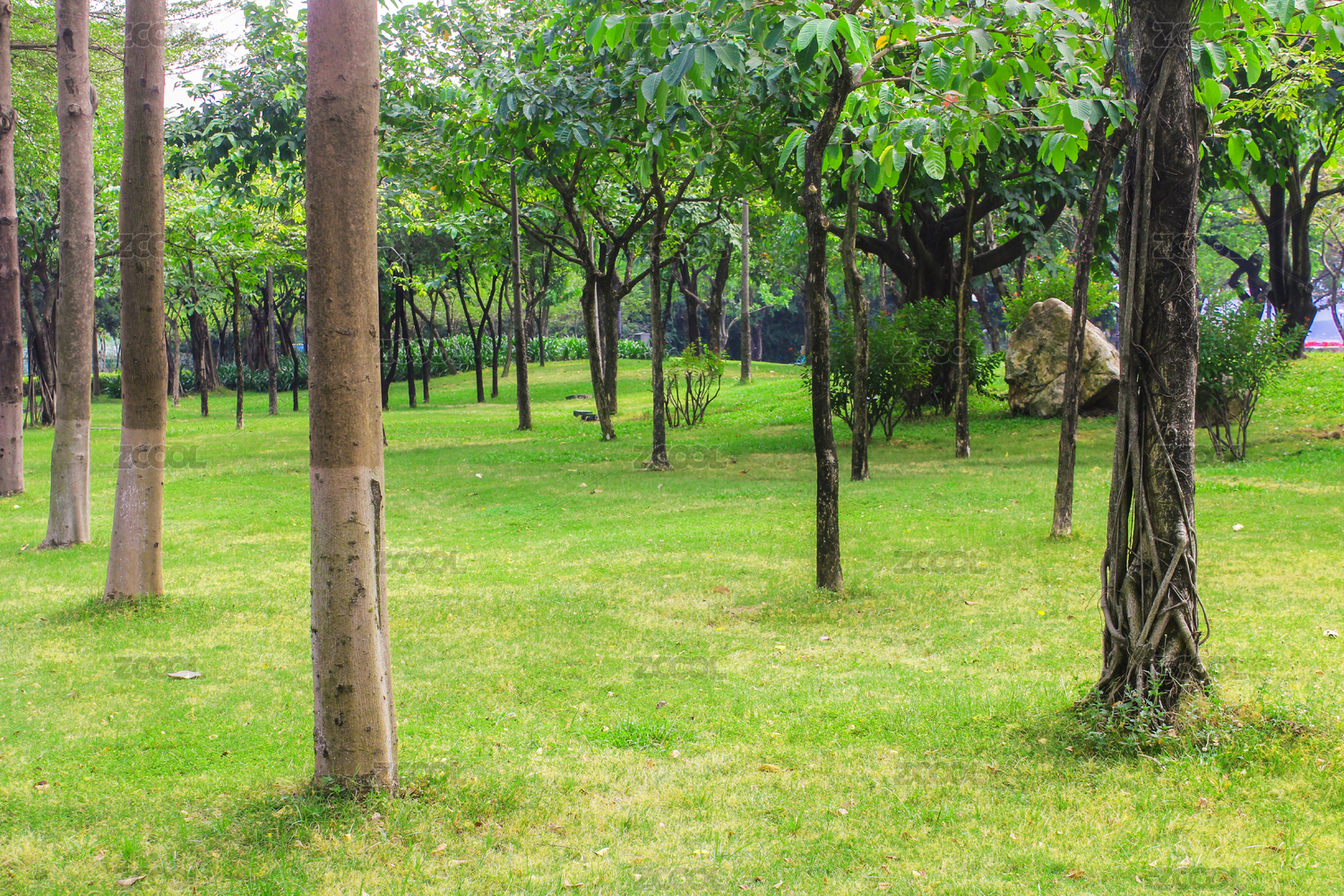 公园里的草坪和树