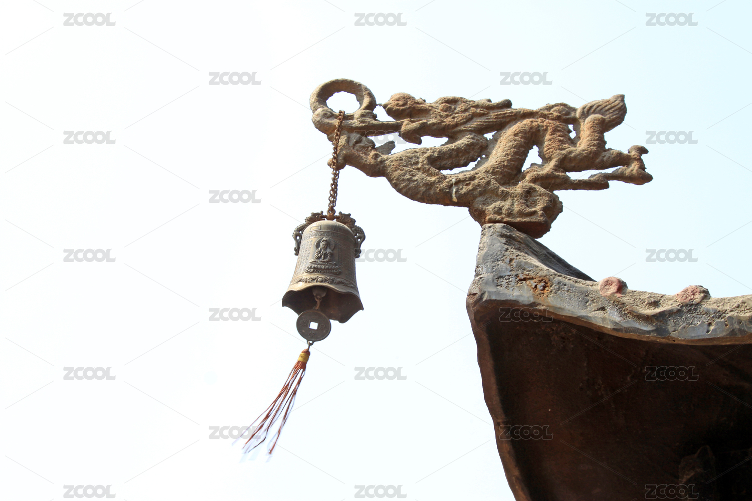 古建筑屋檐上的铜铃与龙雕