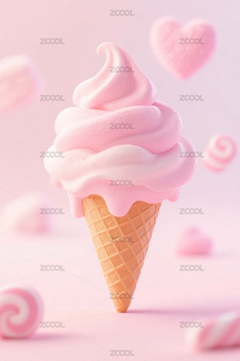 粉红色甜蜜卡通3D冰淇淋雪糕插画