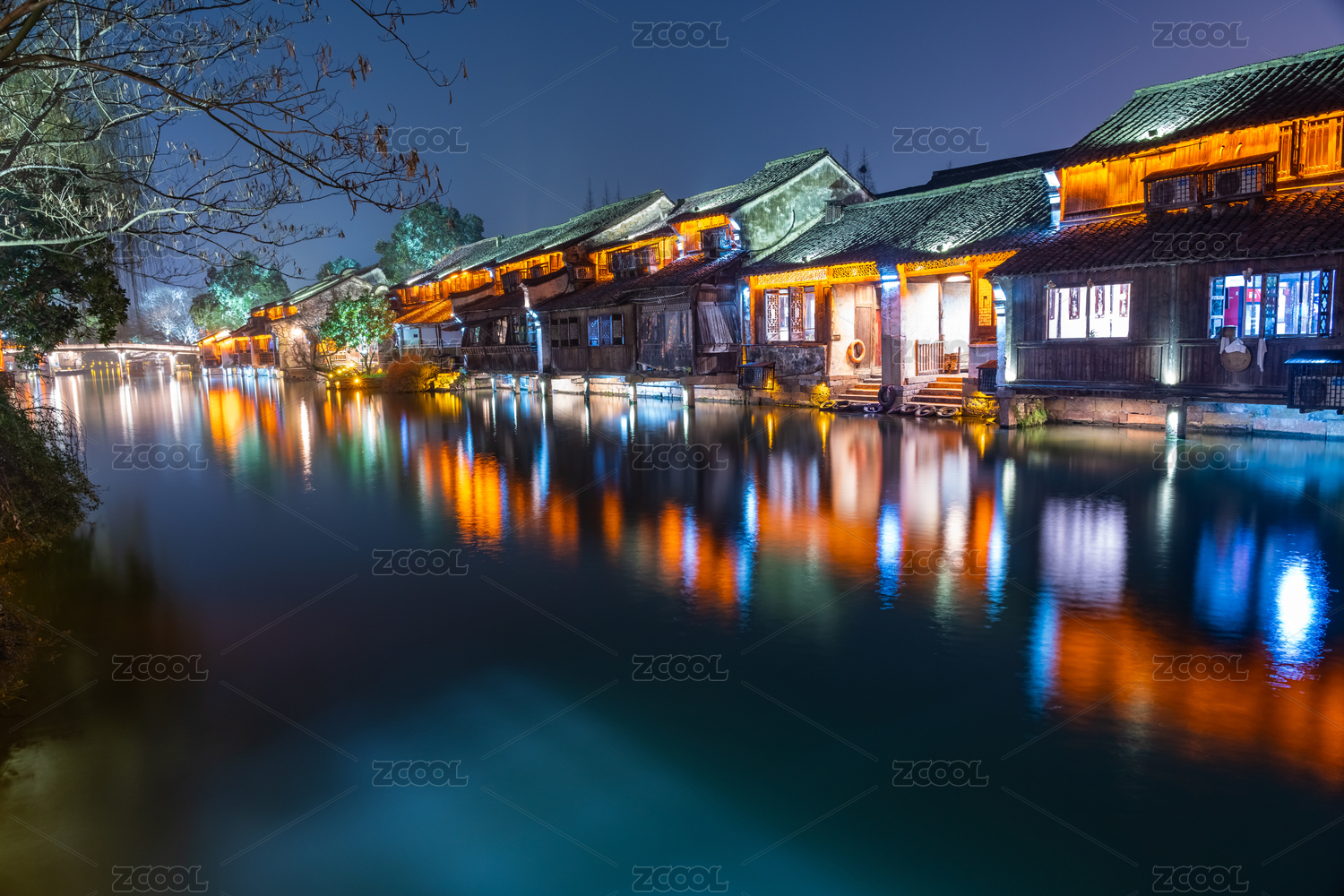 浙江省,嘉兴市,桐乡市,乌镇,东栅,西栅,夜景,倒影,古村落,村落