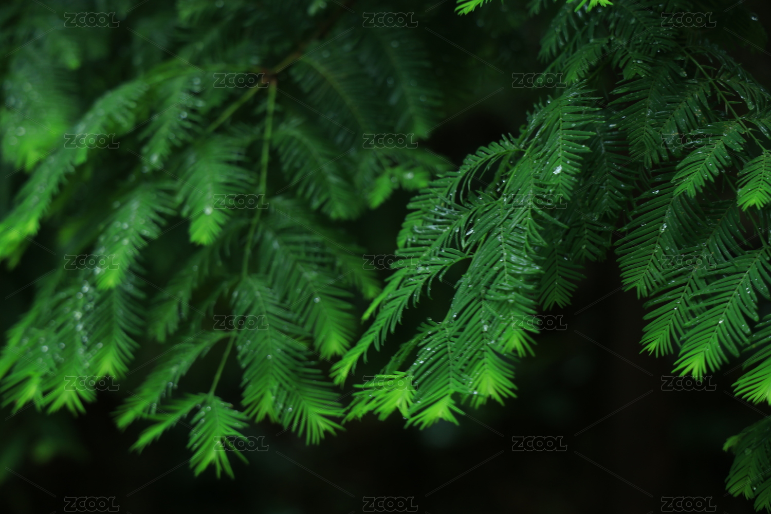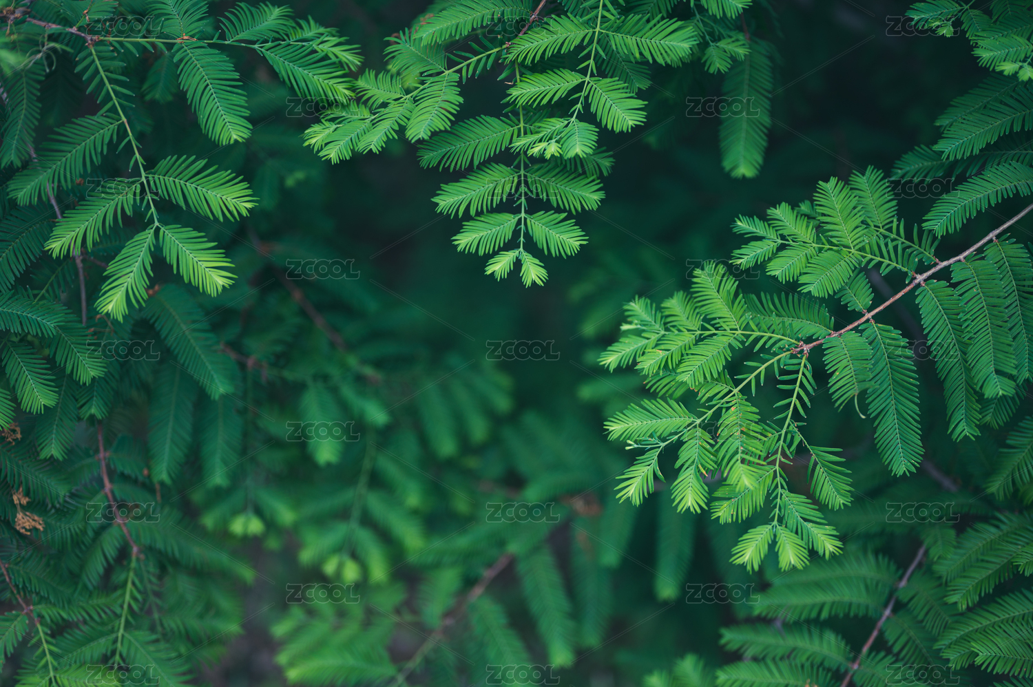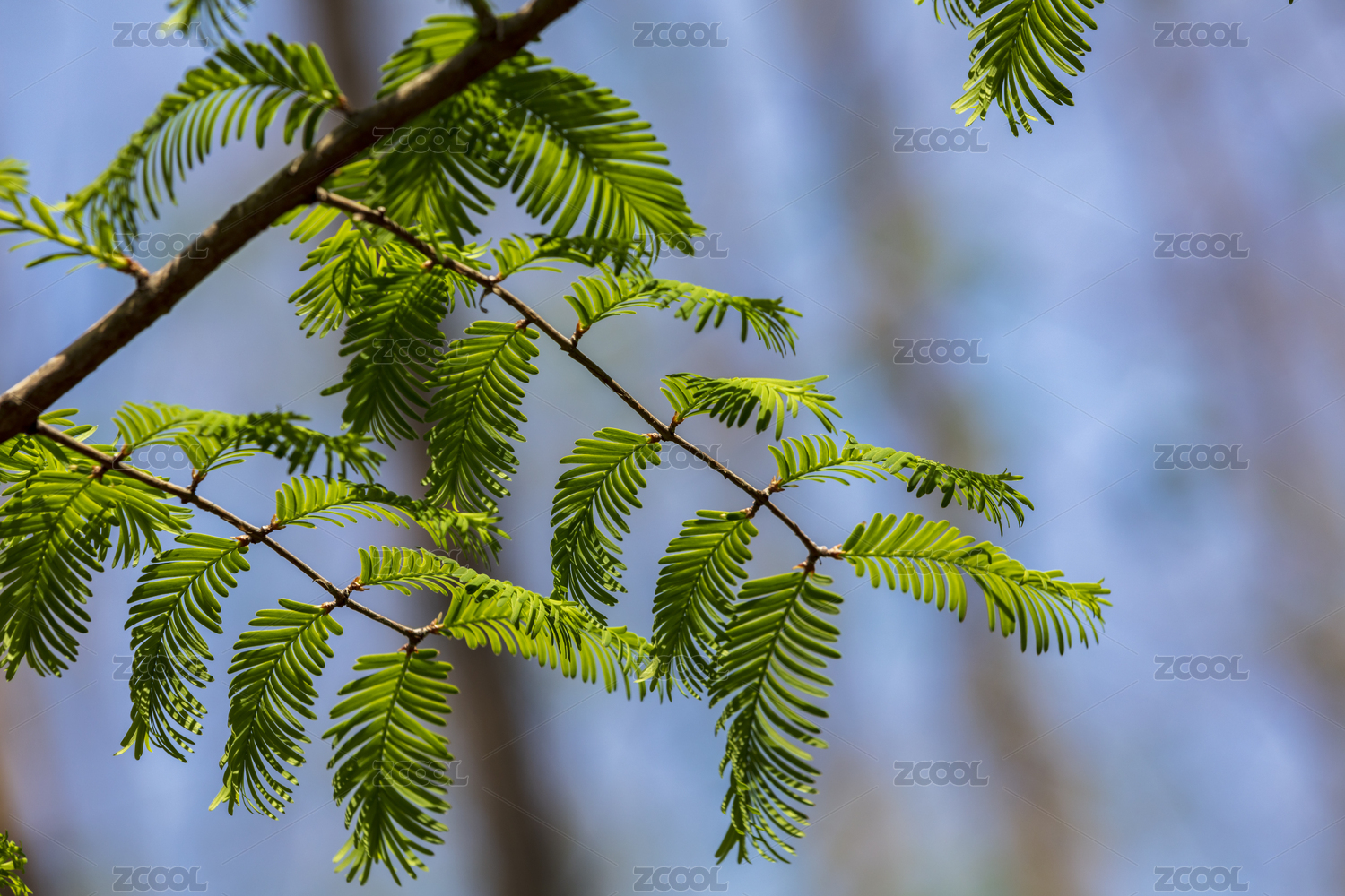 春天绿色的水杉树叶特写