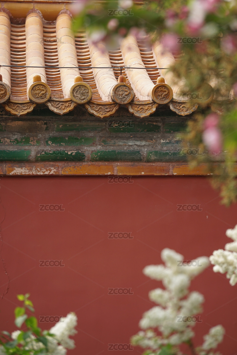 中国上海知也禅寺的寺院红墙古建筑绿藤