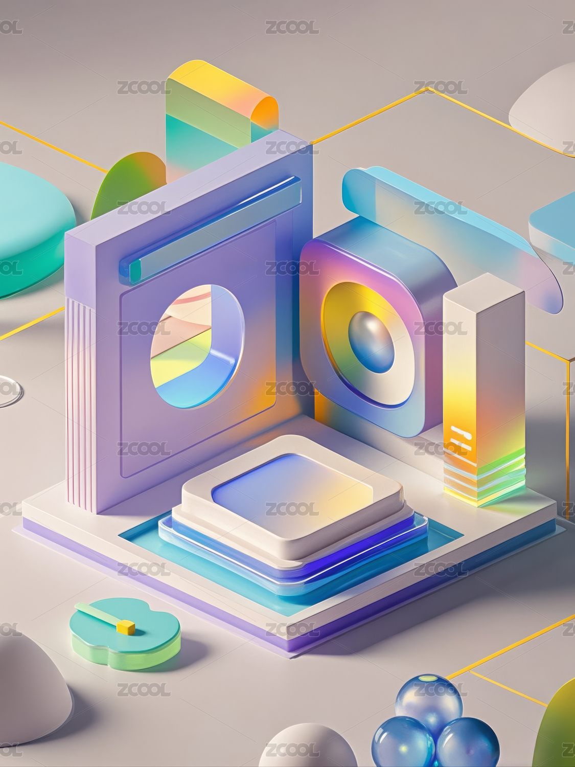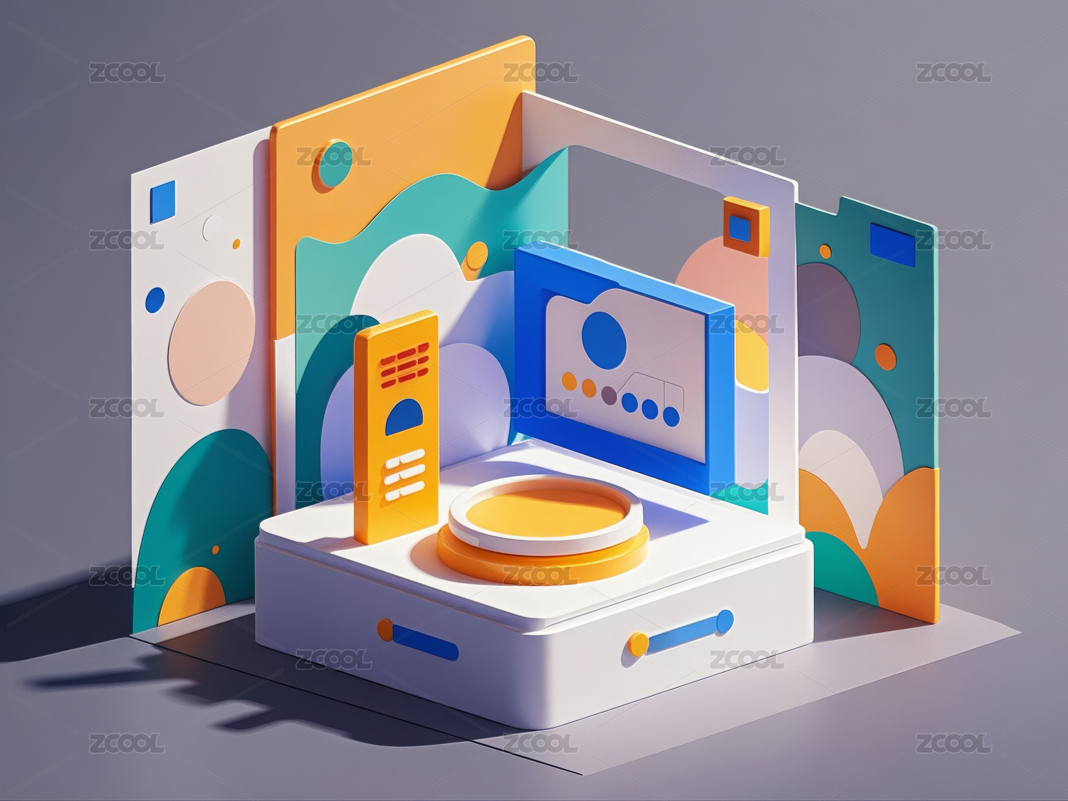 DXCZ202401,展台,商品展示台,展示台,3D,微观,几何图形,多彩,抽象