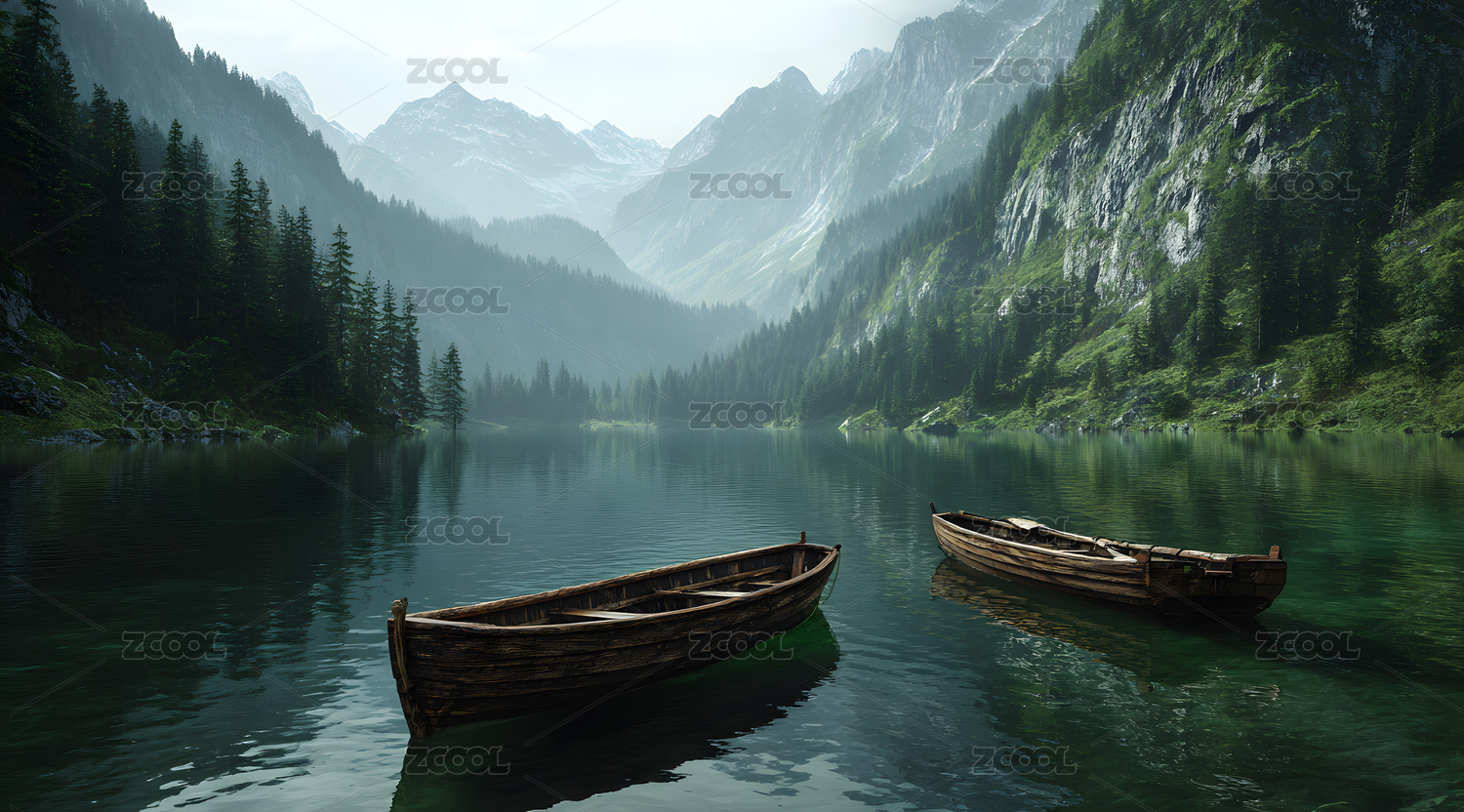 清晨的湖泊和船只