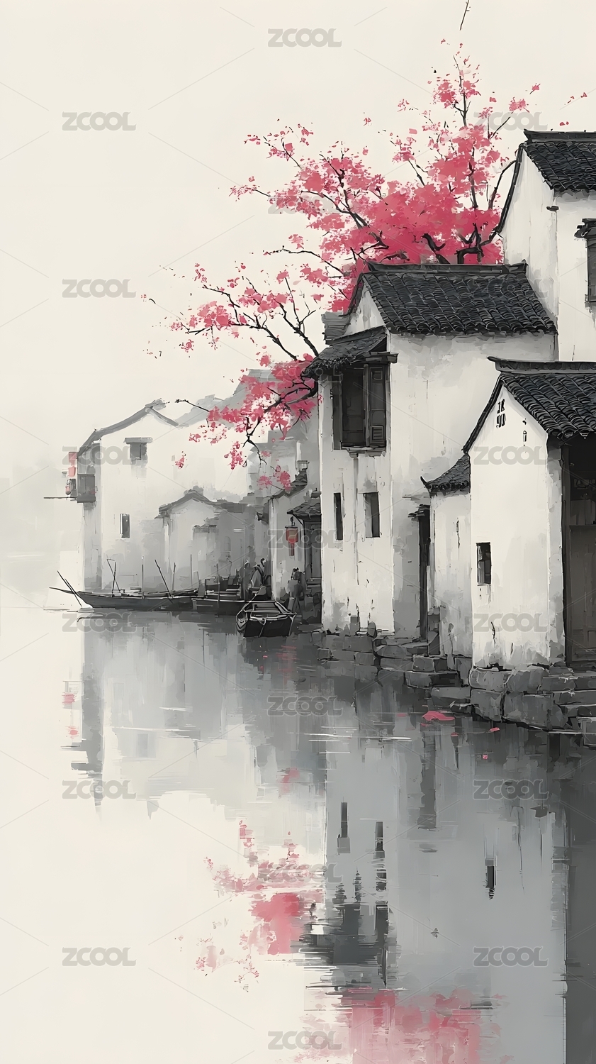 艺术,绘画,风景,水面,水,油画,水彩画,风景画,中国风,水墨画