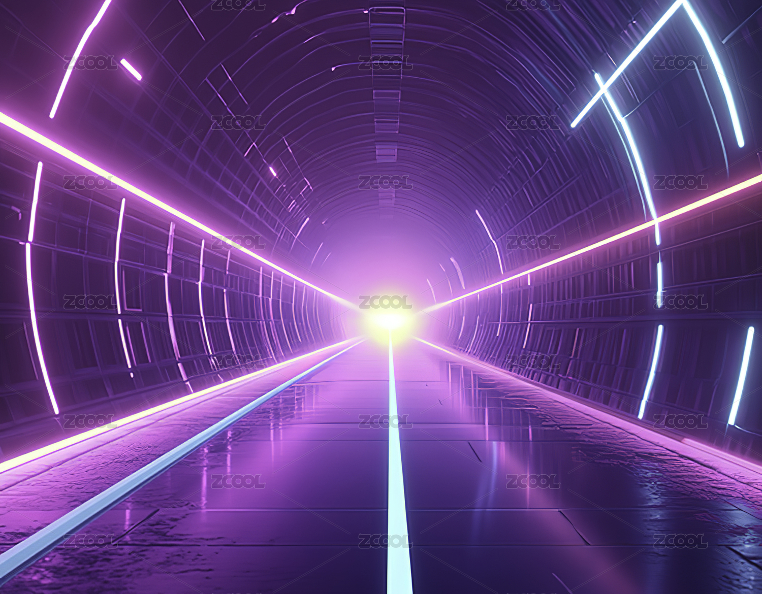 黑暗隧道发光照明抽象技术速度概念三维渲染