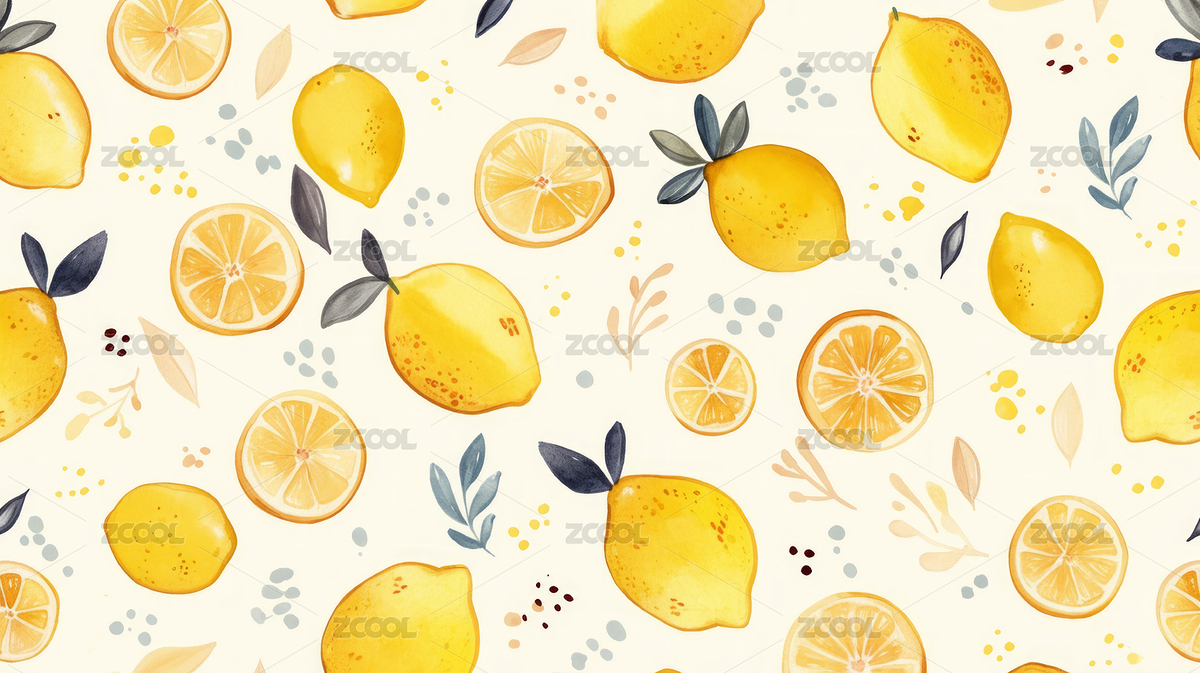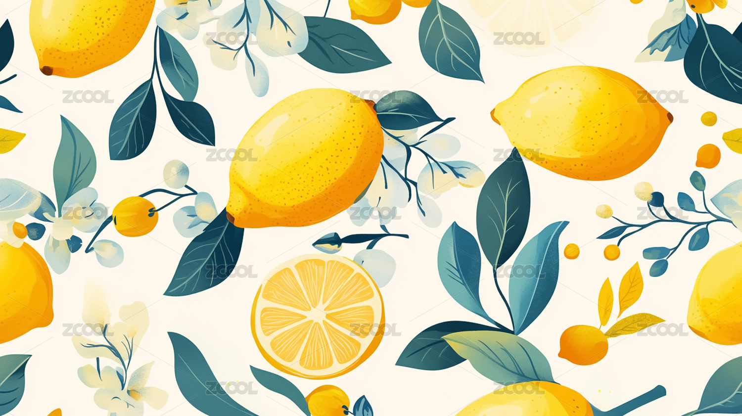数码黄蓝柠檬图案插画海报网页PPT背景