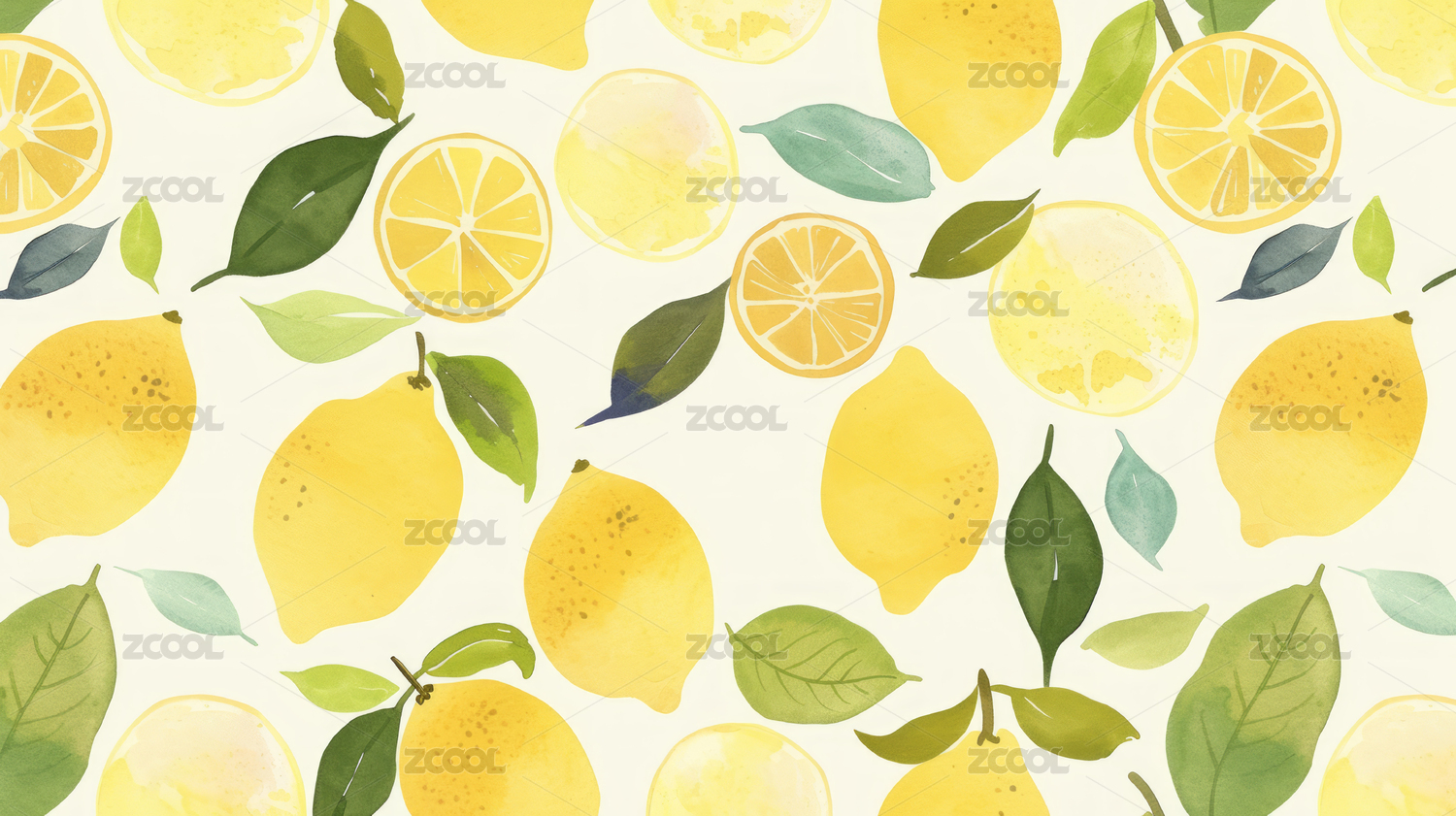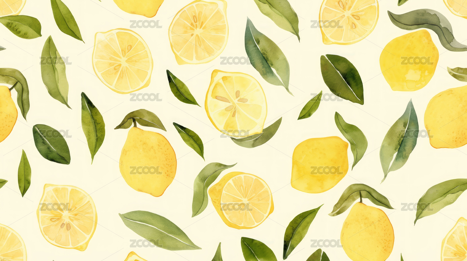 柠檬,水彩画,水果,叶子,夏季,清新,背景,图案,无缝,黄色