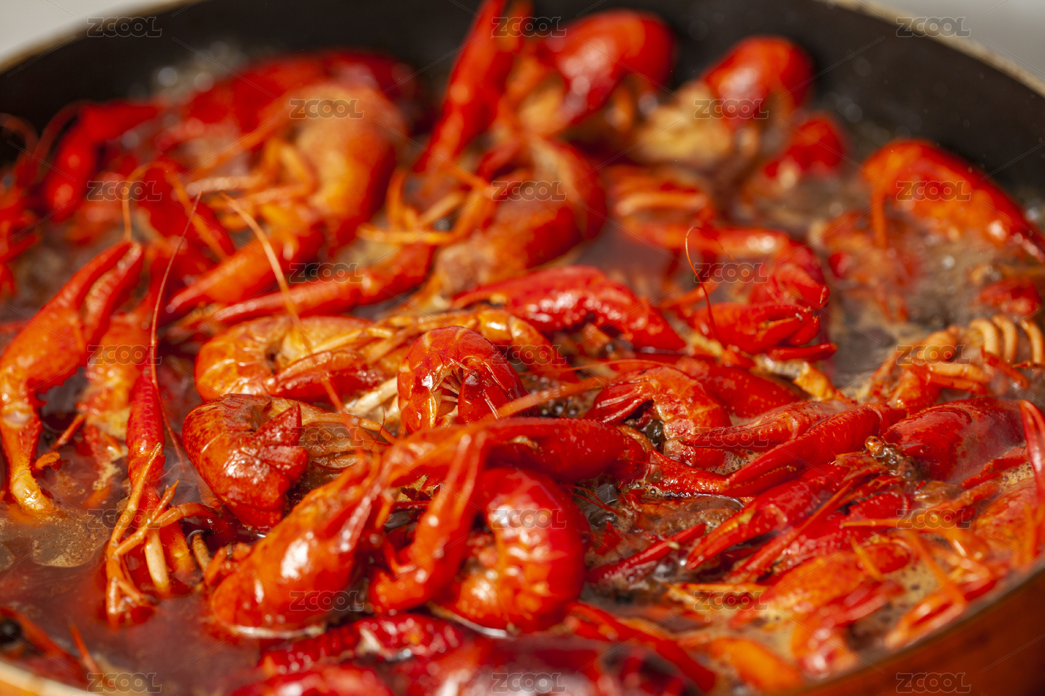锅中的红烧小龙虾特写镜头