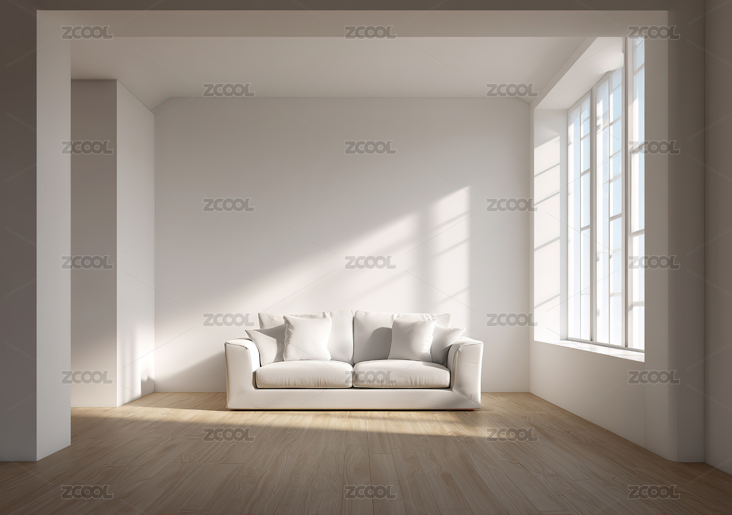 简约白色客厅沙发光影