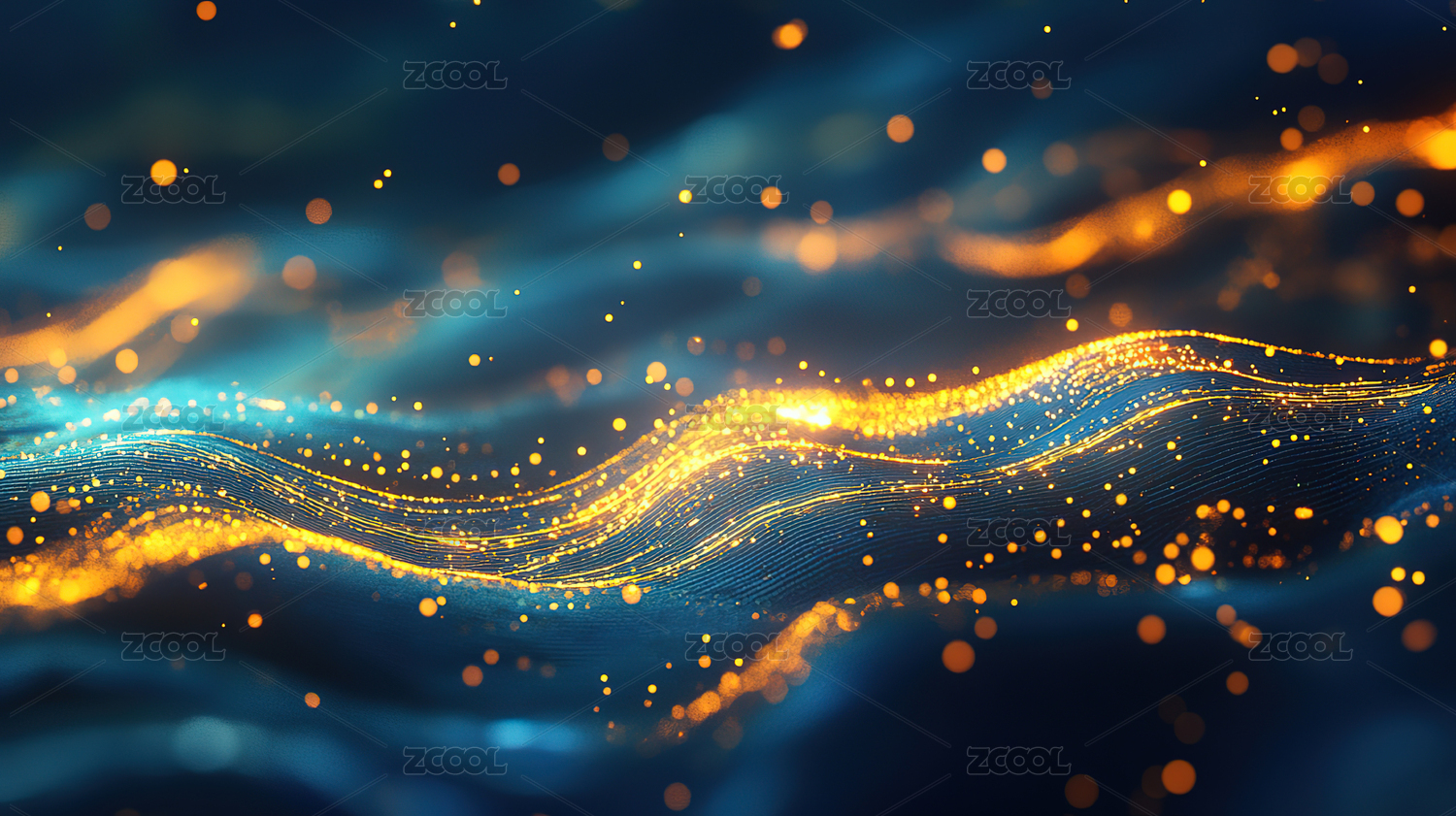 3D抽象流体鎏金发光科技感弯曲流动背景