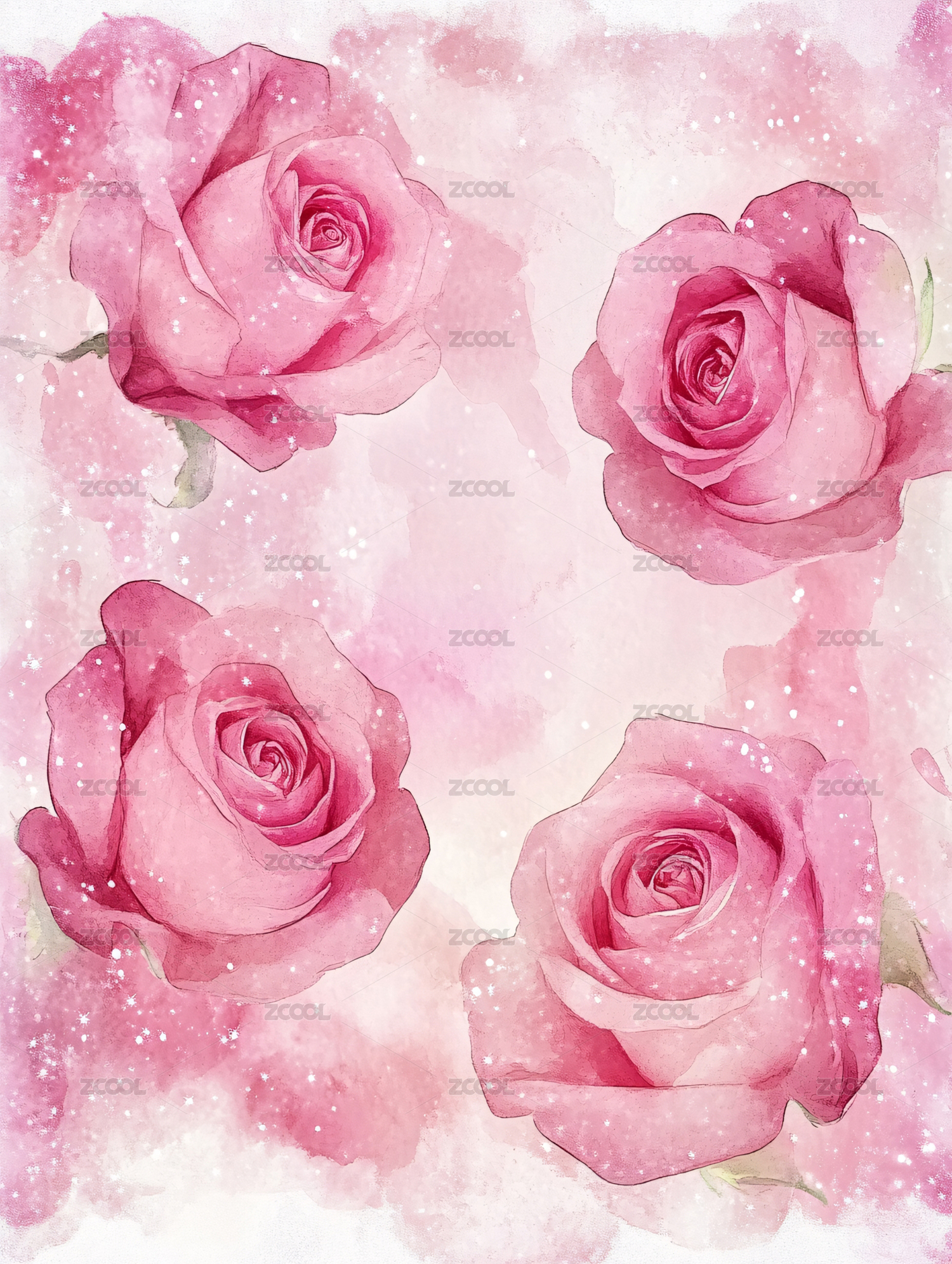 水彩手绘印花插图玫瑰情人节元素图案素材